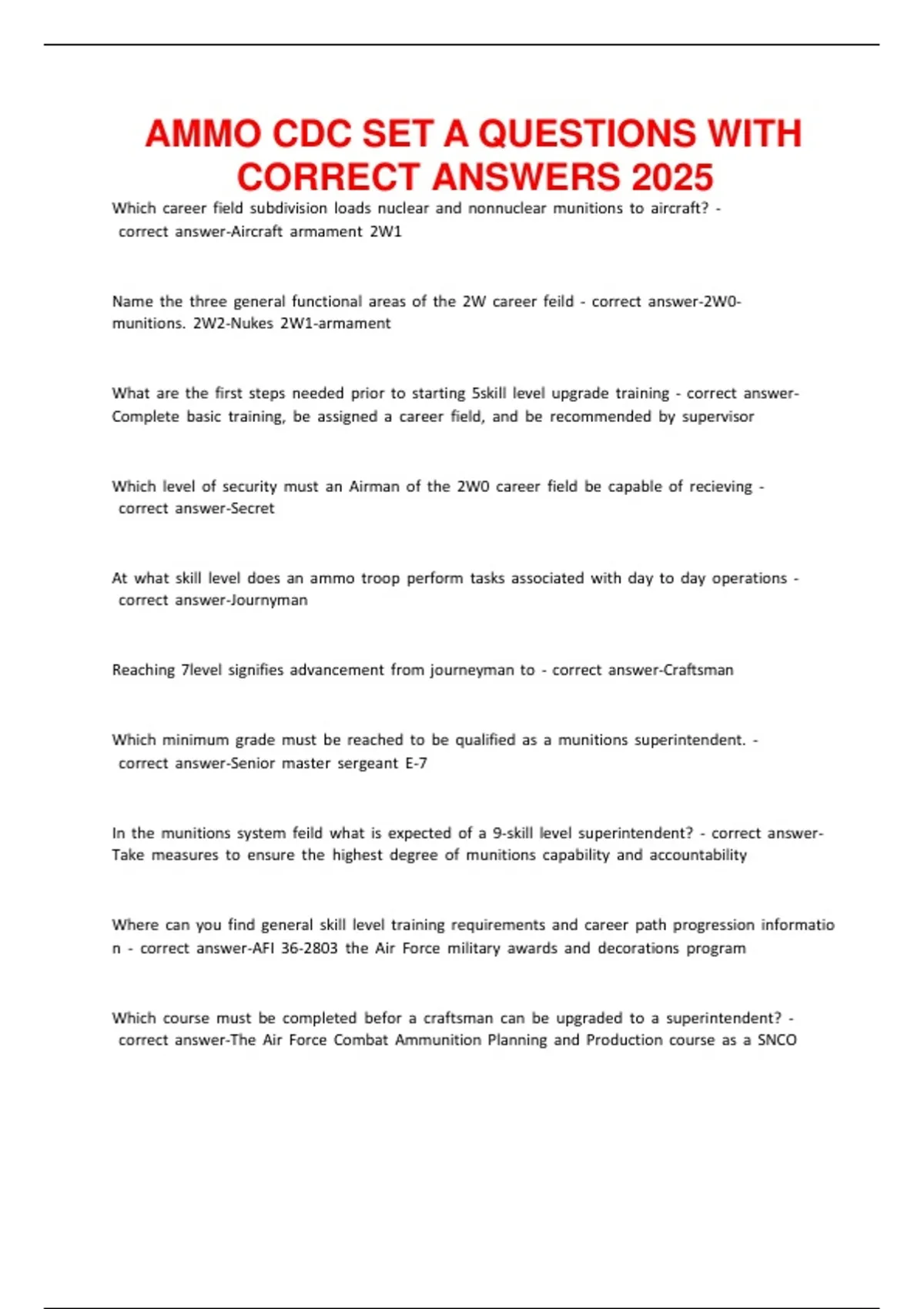 AMMO CDC SET A QUESTIONS WITH CORRECT ANSWERS 2025