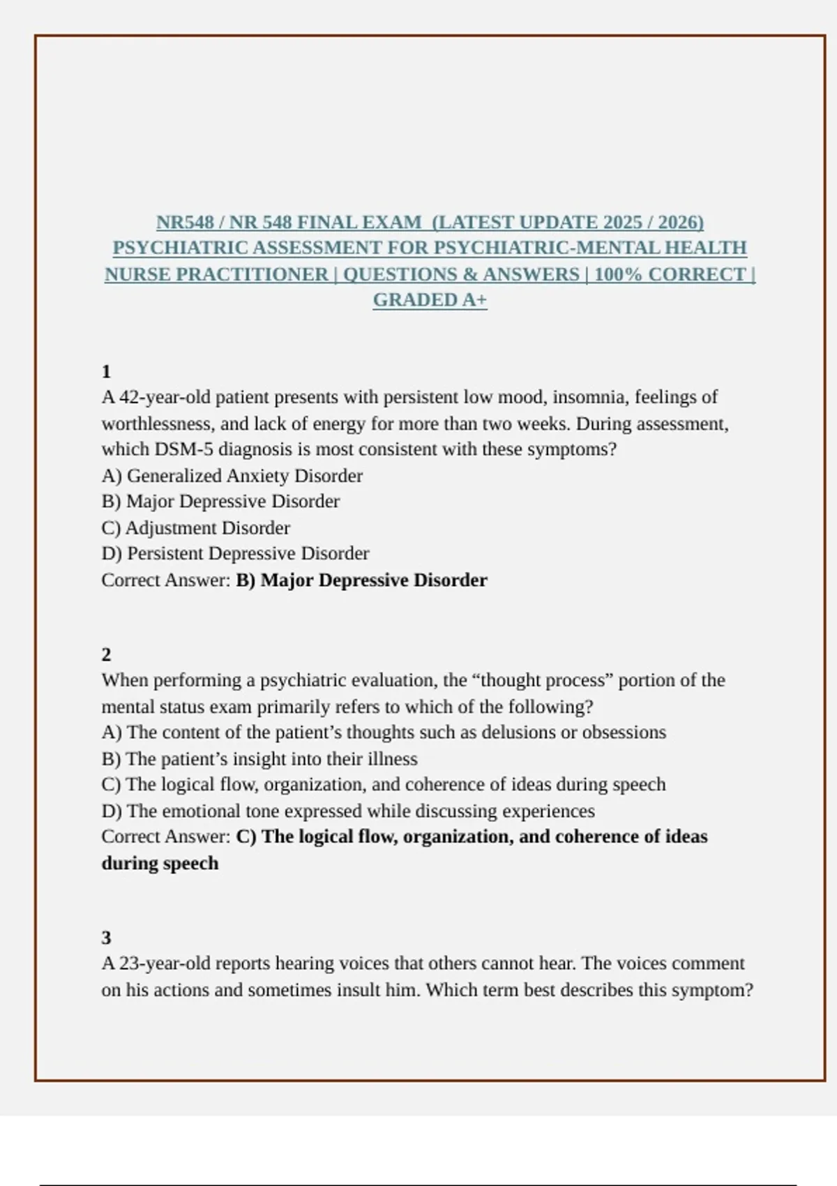 Correct Answer: B) Major Depressive Disorder