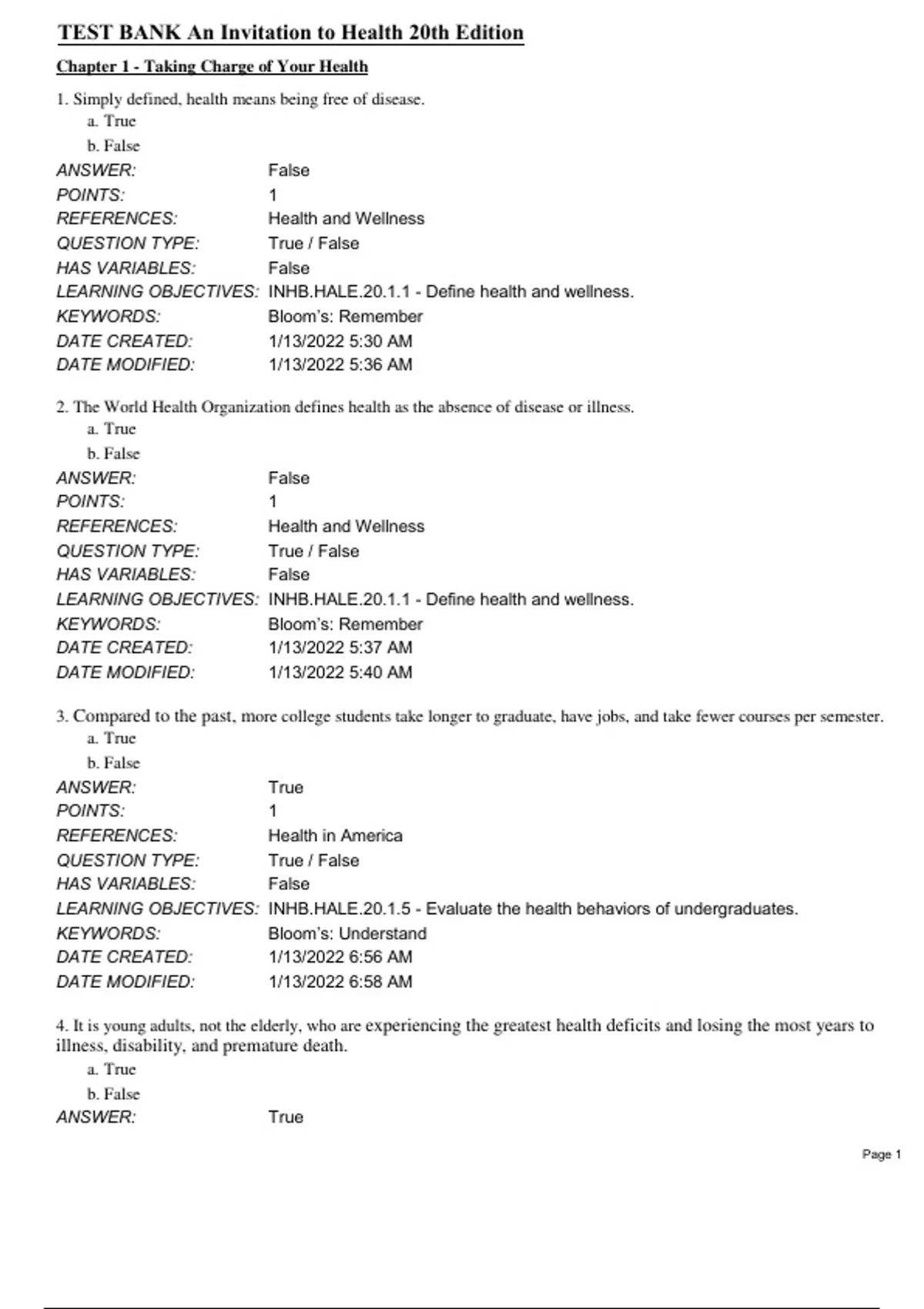LEARNING OBJECTIVES: INHB.HALE.20.1.1 - Define health and wellness.