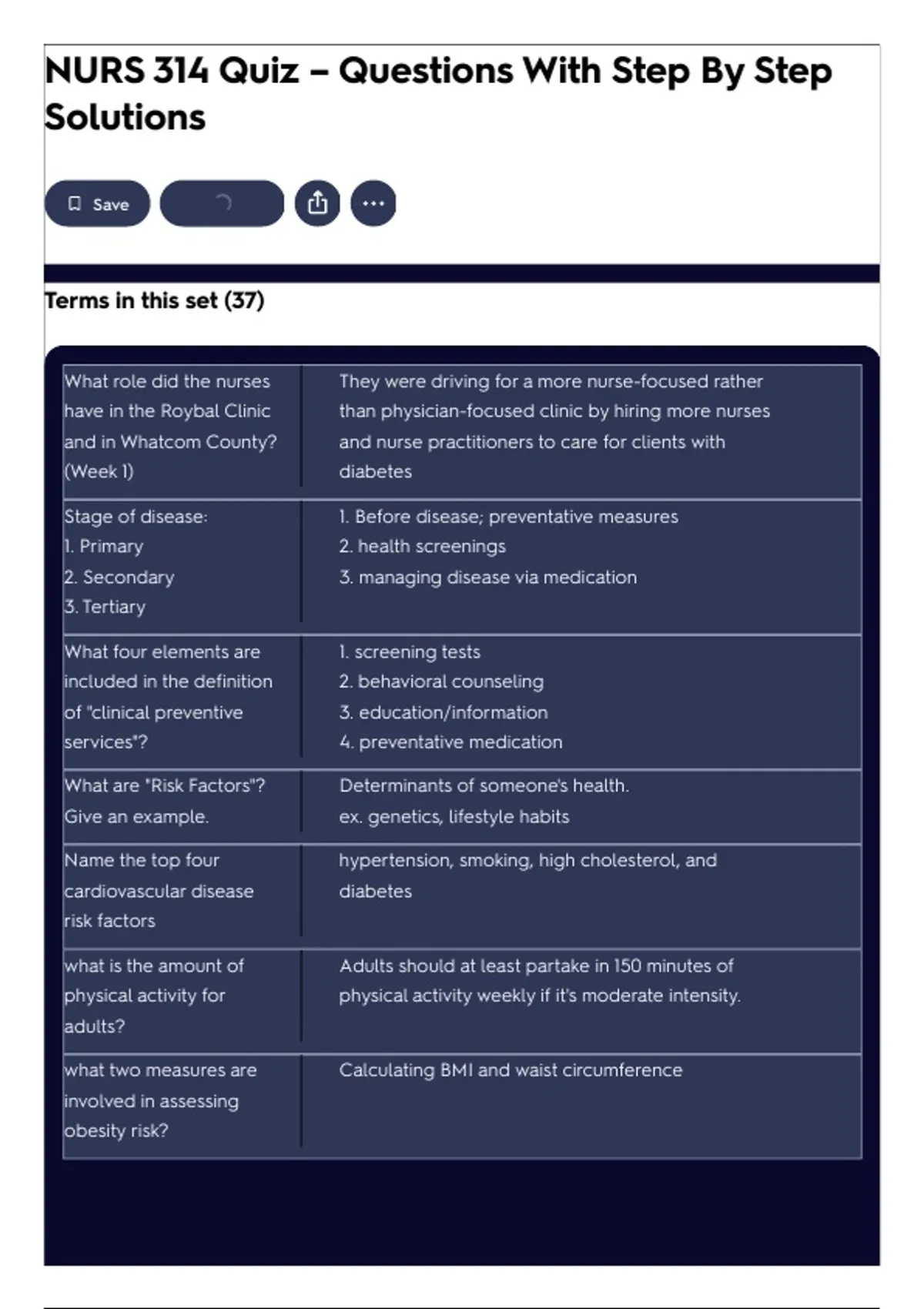 NURS 314 Quiz – Questions With Step By Step Solutions