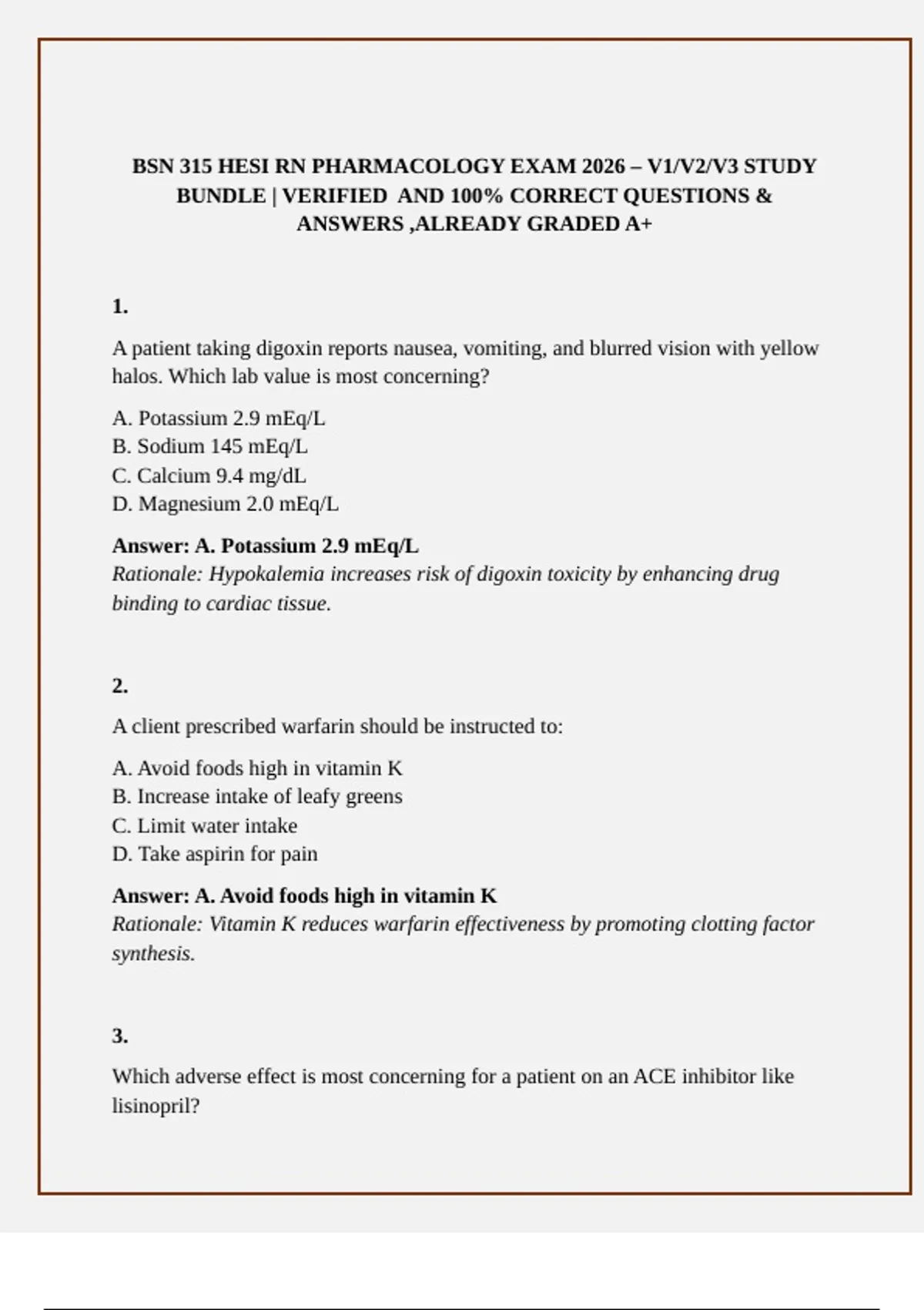Rationale: Hypokalemia increases risk of digoxin toxicity by enhancing drug
