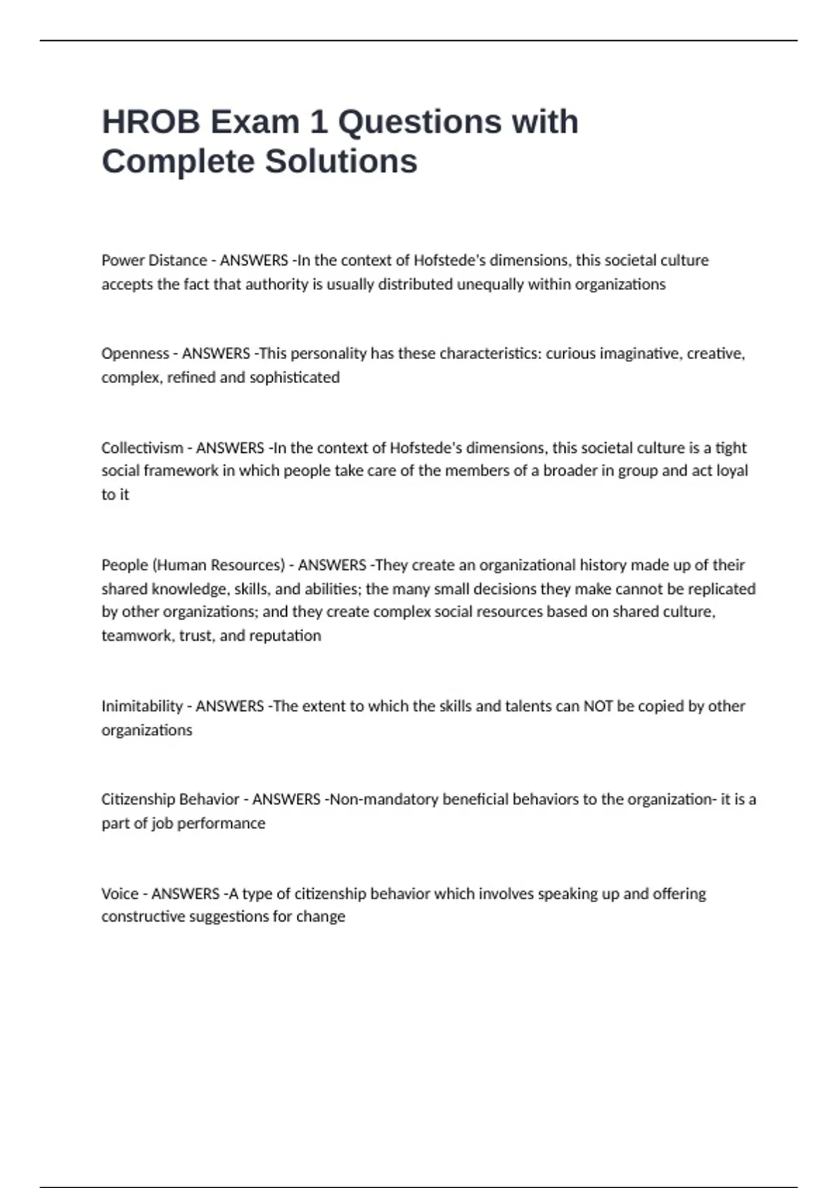 HROB Exam 1 Questions with