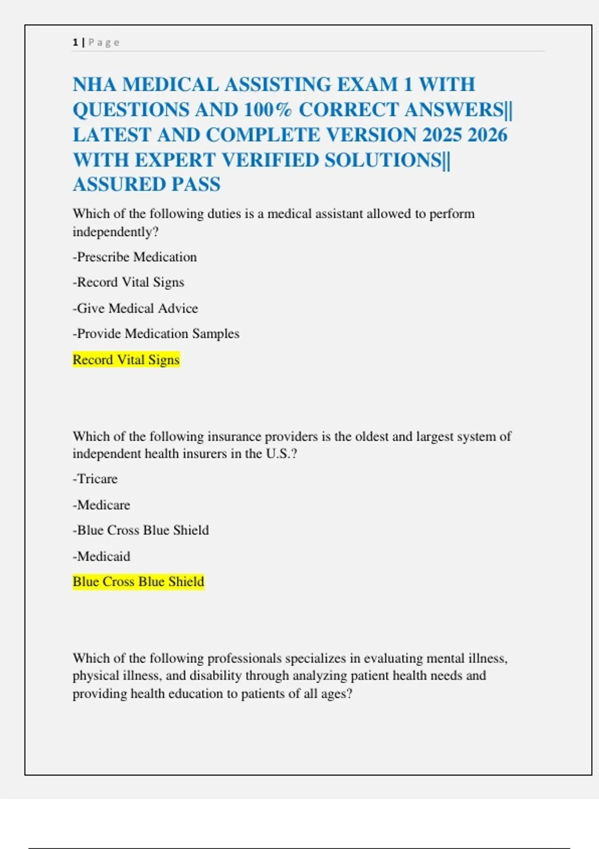 NHA MEDICAL ASSISTING EXAM 1 WITH