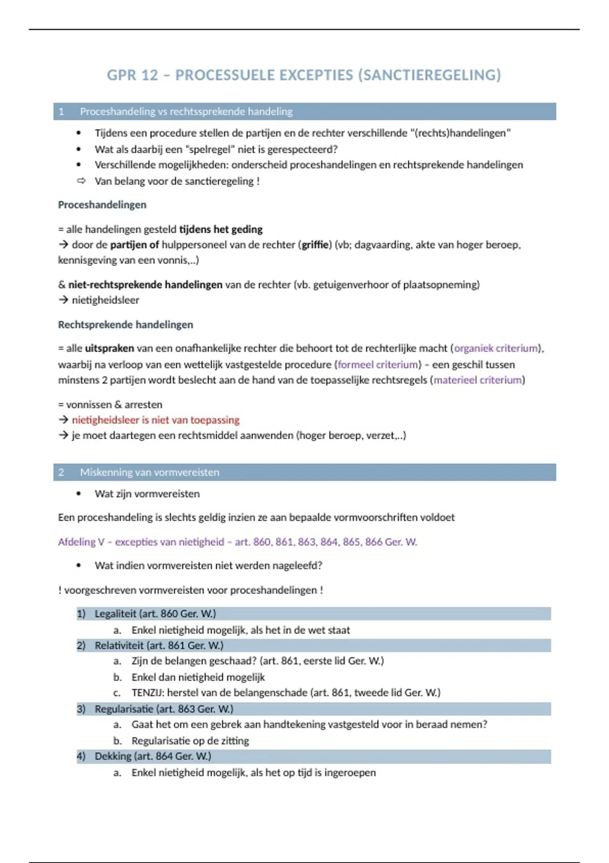Dit is deel 12 van de samenvatting Gerechtelijk privaatrecht, van het AJ 24-25 (2e semester). Ik ben in 1x geslaagd voor het vak, met deze samenvatting. Richting: Rechtspraktijk - aan HoGent