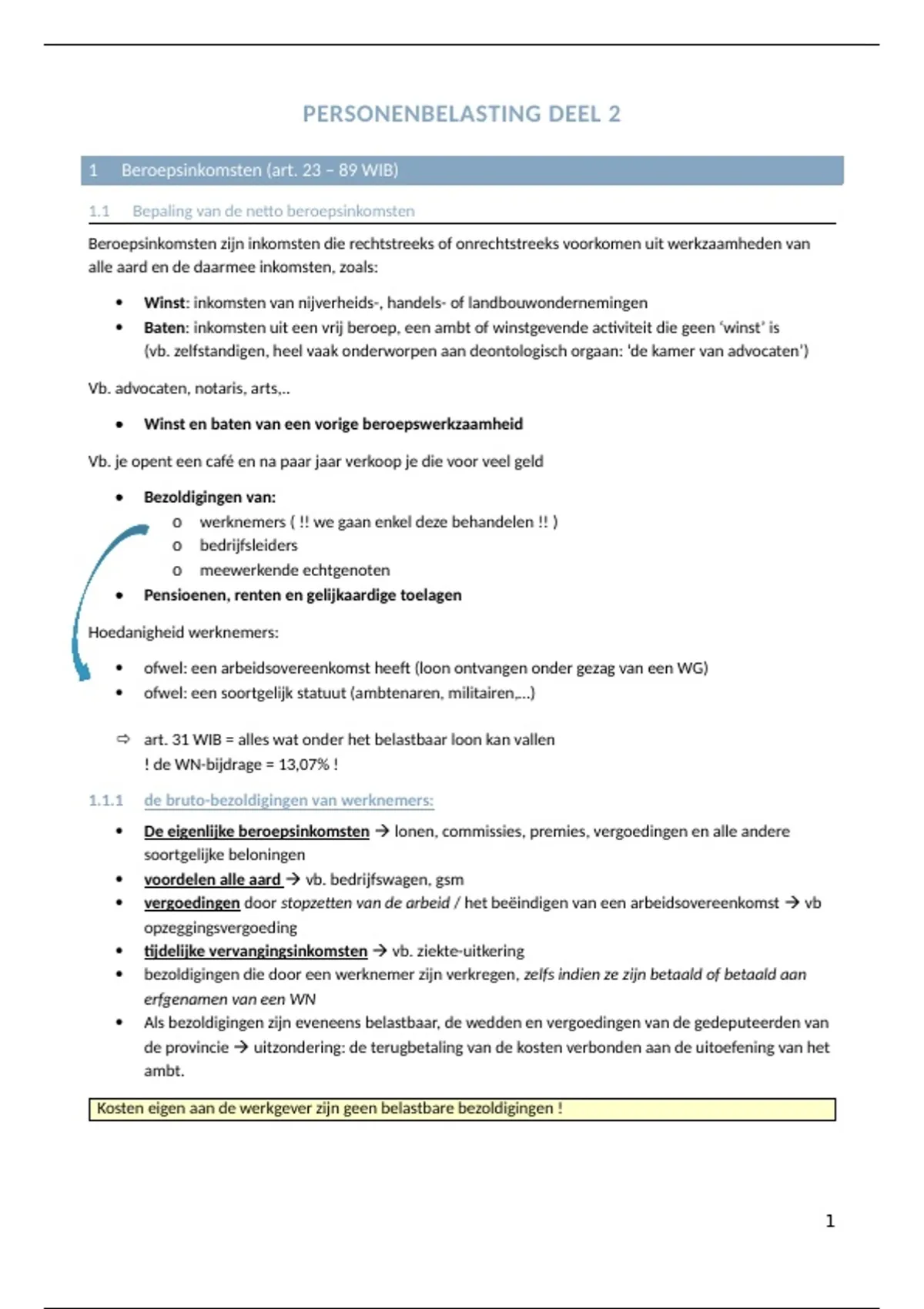 1 Beroepsinkomsten (art. 23 – 89 WIB)