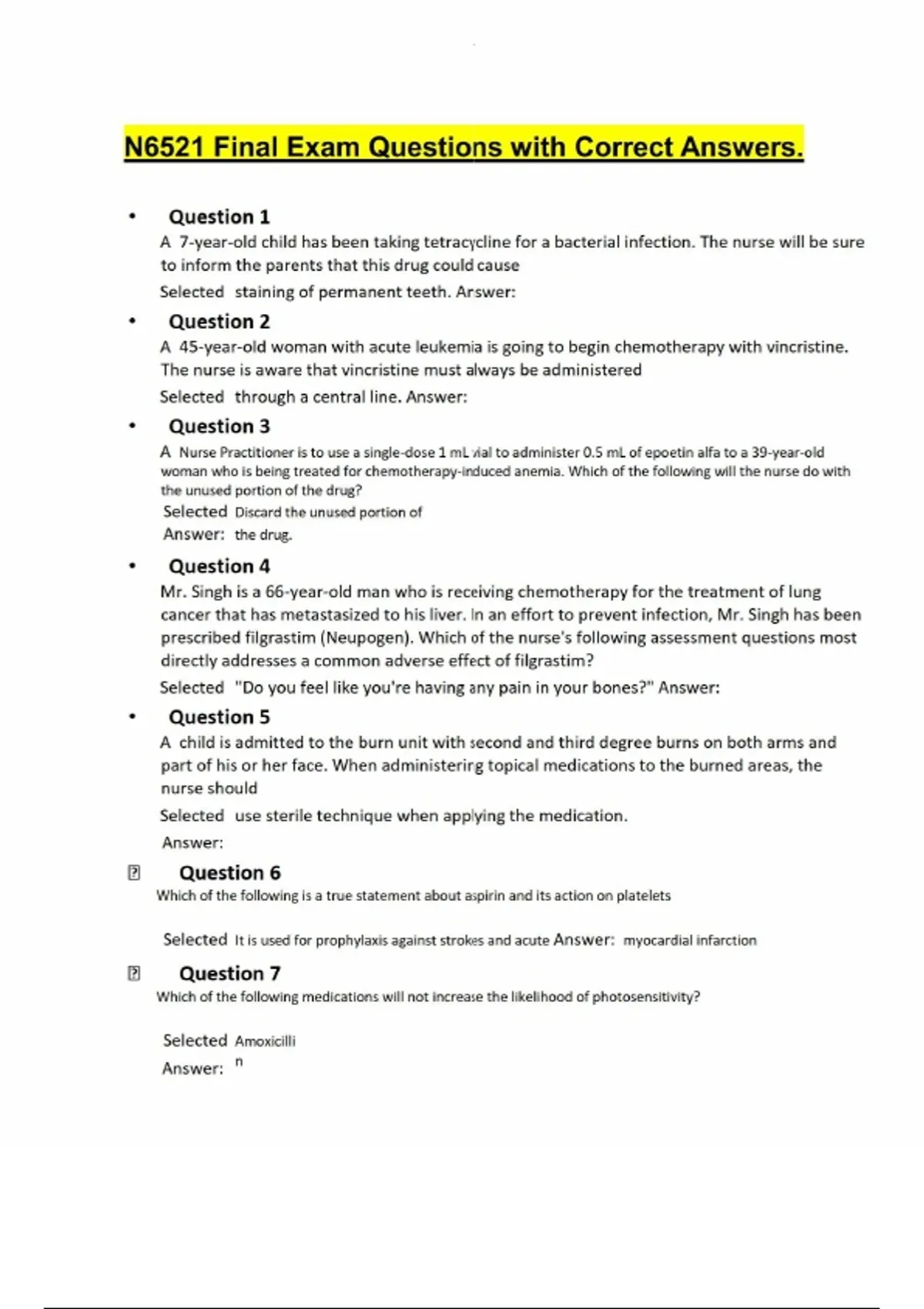 N6521 Final Exam Questions with Correct Answers.N6521 Final Exam Questions with Correct Answers.