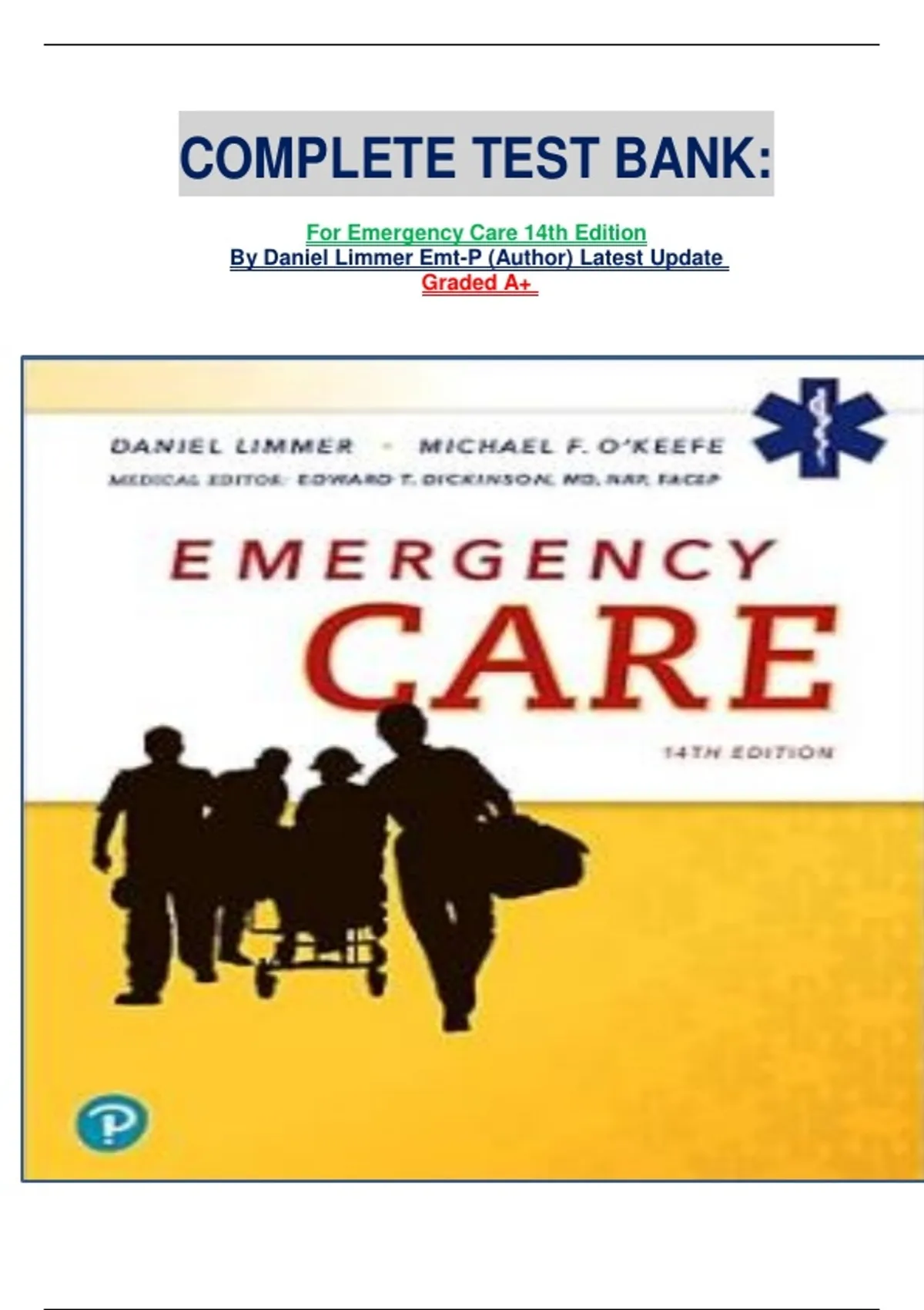 ,Emergency Care 14th Edition By Daniel Limmer, Michael F. O'keefe And Edward T. Dickinson Test Bank