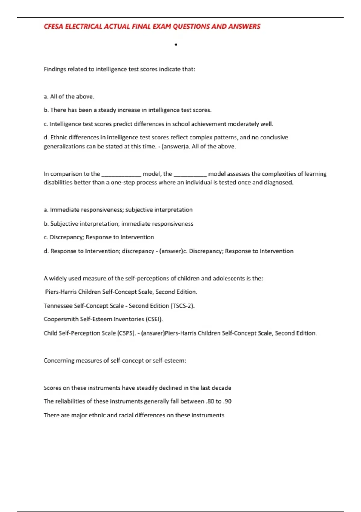 , CFESA ELECTRICAL ACTUAL FINAL EXAM QUESTIONS AND ANSWERS