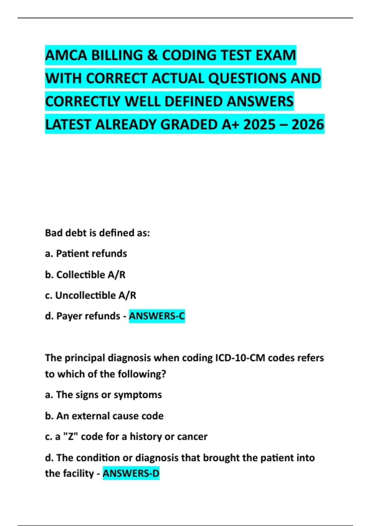 d. Payer refunds - ANSWERS-C