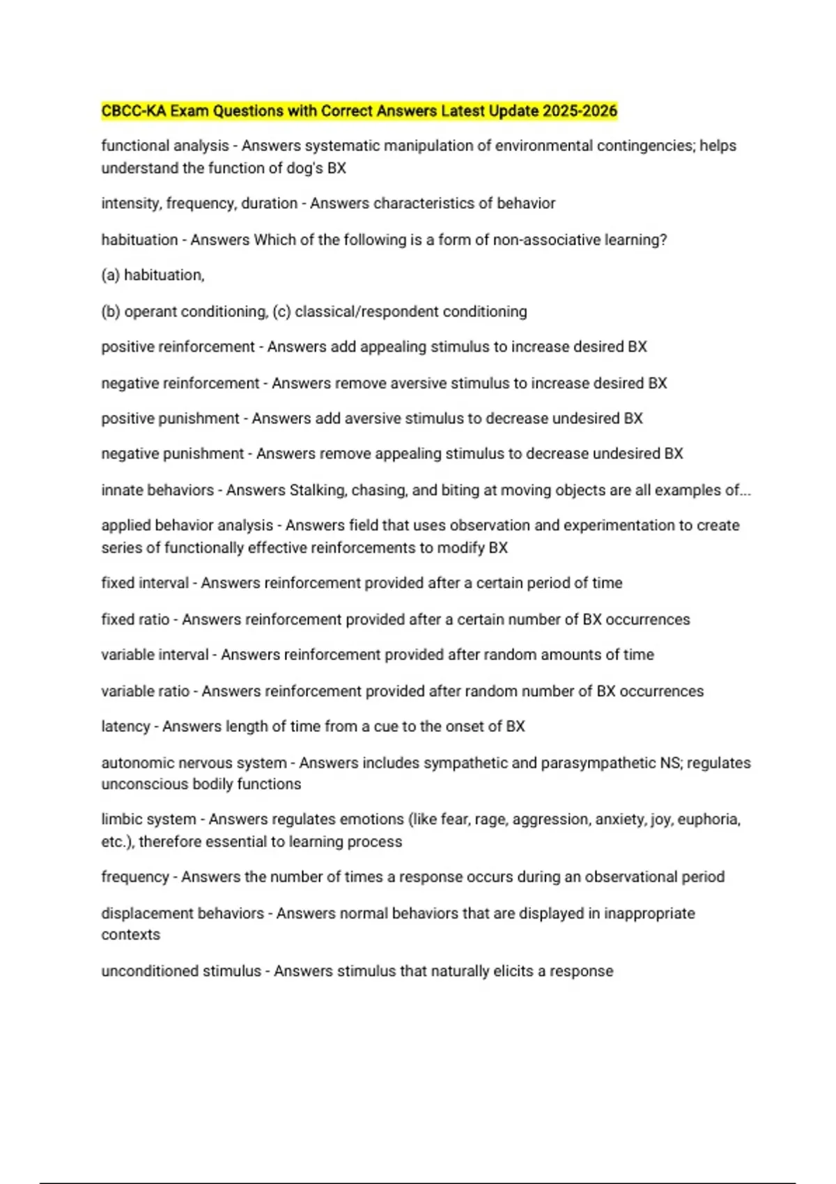 negative reinforcement - Answers remove aversive stimulus to increase desired BX