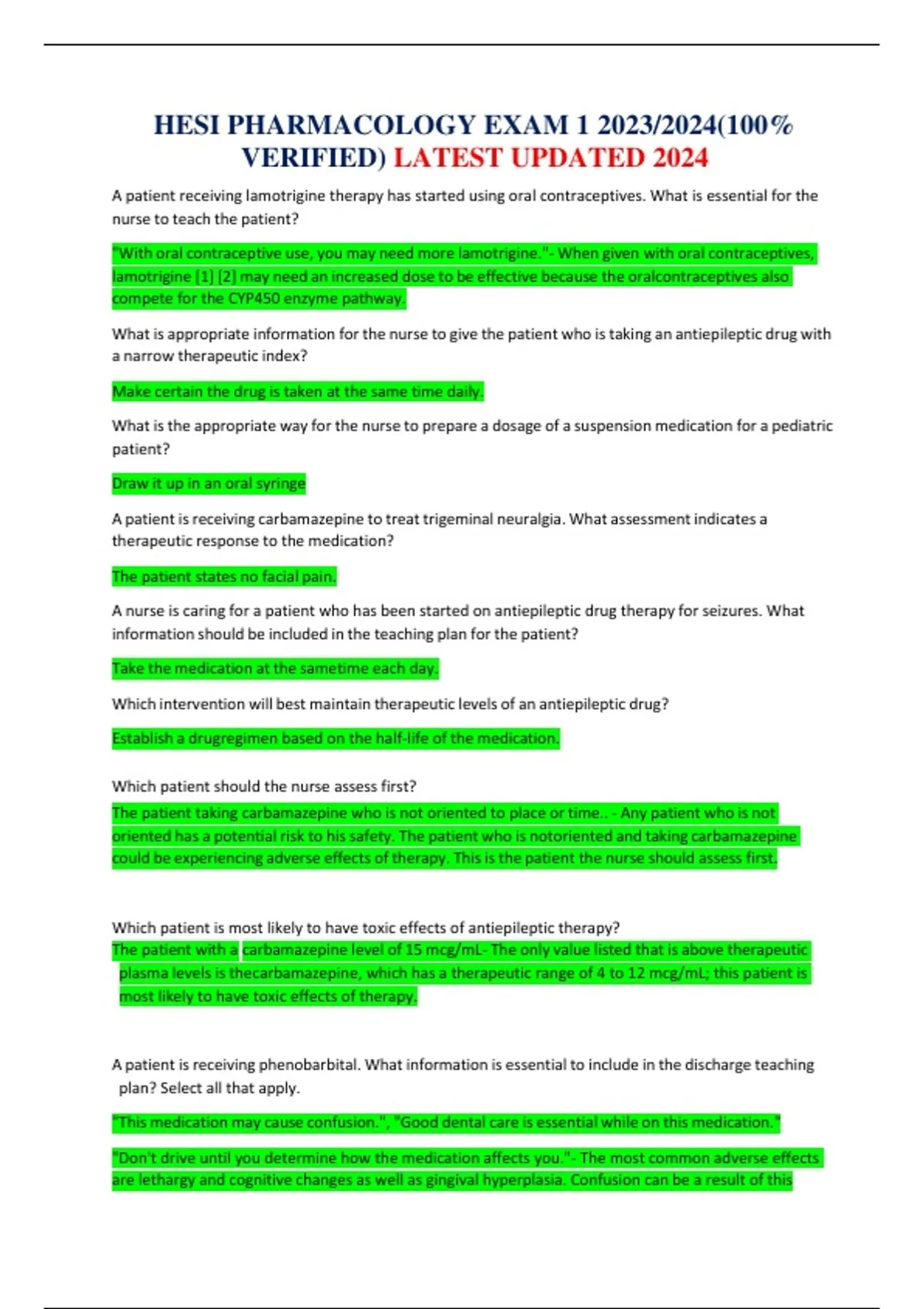 This document provides the complete HESI Pharmacology Exam 1 for the 2023/2024 academic year. It contains the latest updated version for 2024 with 100% verified and correct answers. This resource is ideal for nursing students preparing for the HESI pharmacology exam, offering accurate guidance and reliable practice material.
