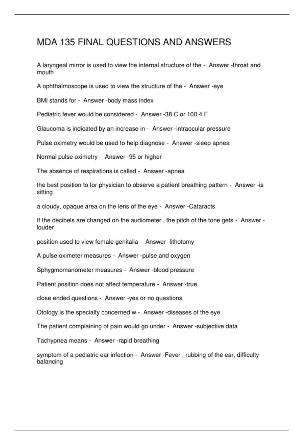 MDA 135 FINAL QUESTIONS AND ANSWERS