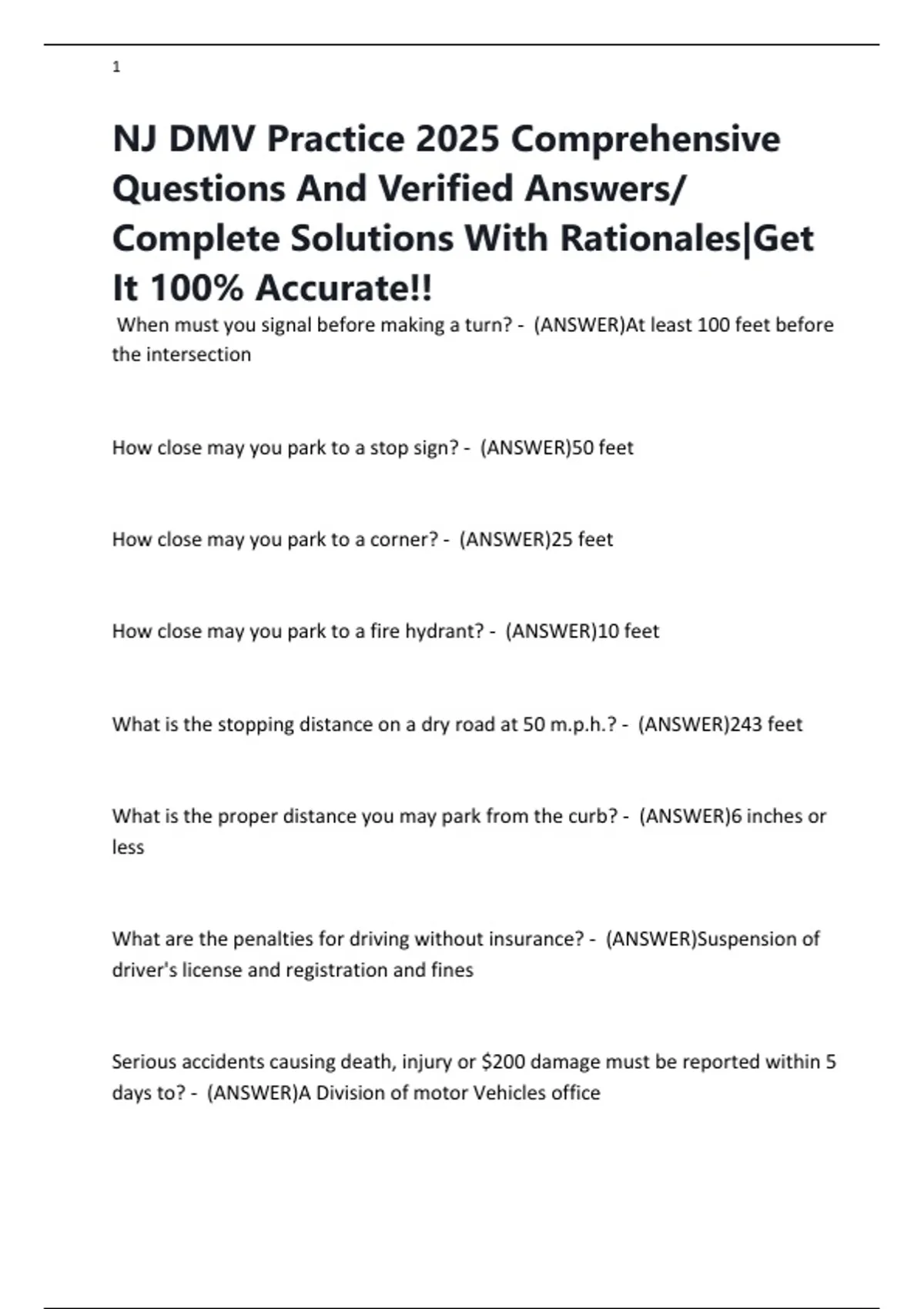NJ DMV Practice 2025 Comprehensive