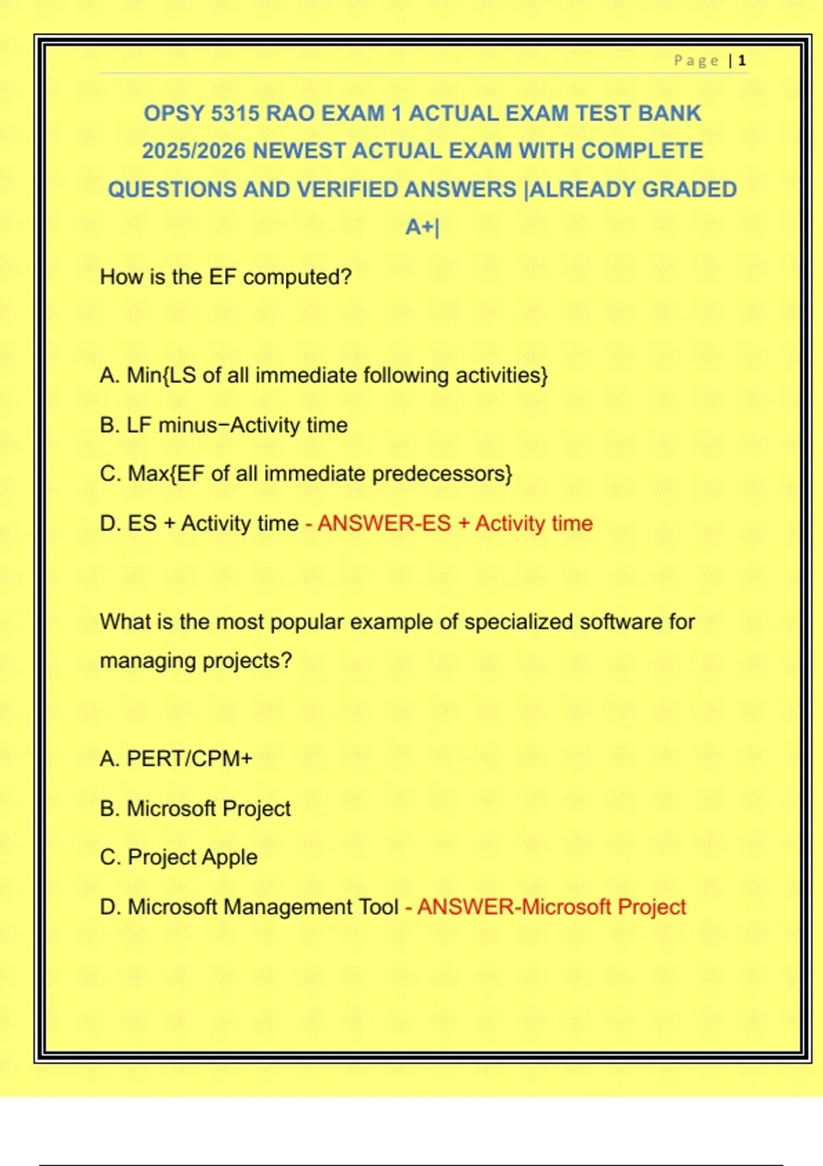 OPSY 5315 RAO EXAM 1 ACTUAL EXAM TEST BANK