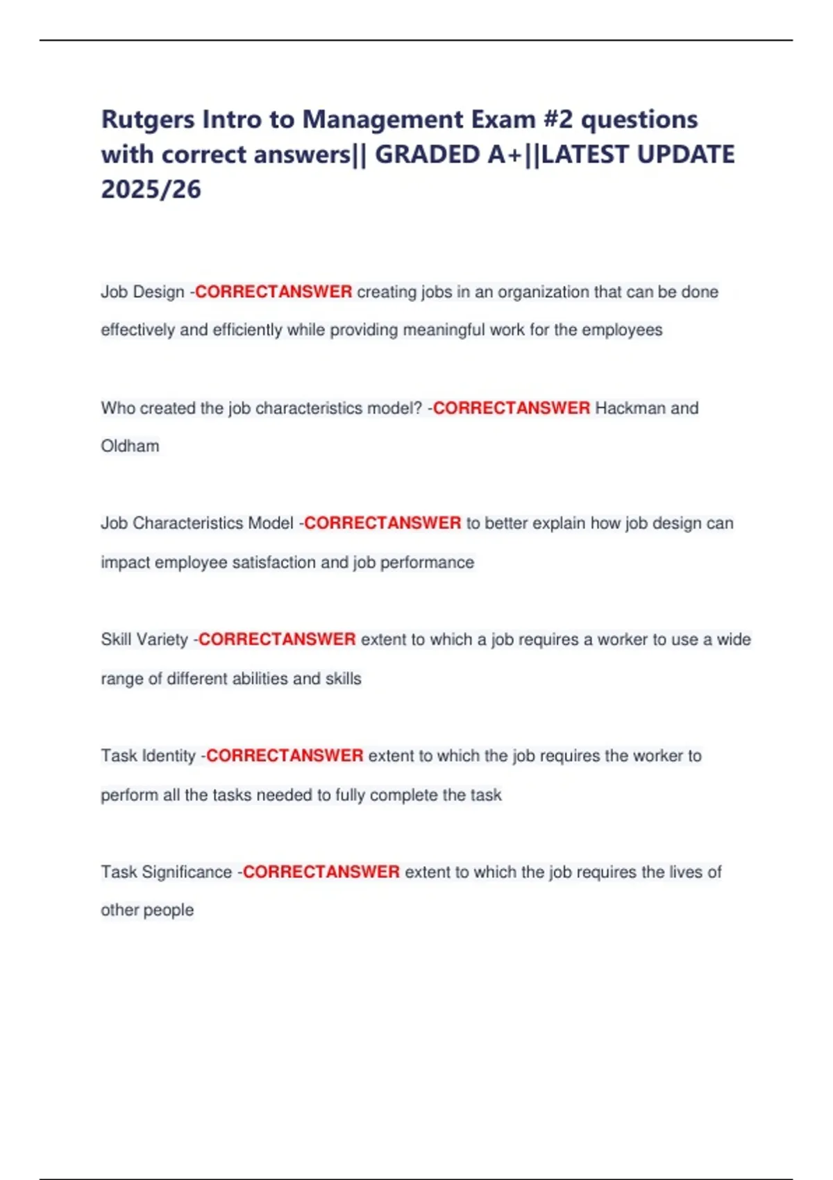 Job Characteristics Model -CORRECTANSWER to better explain how job design can
