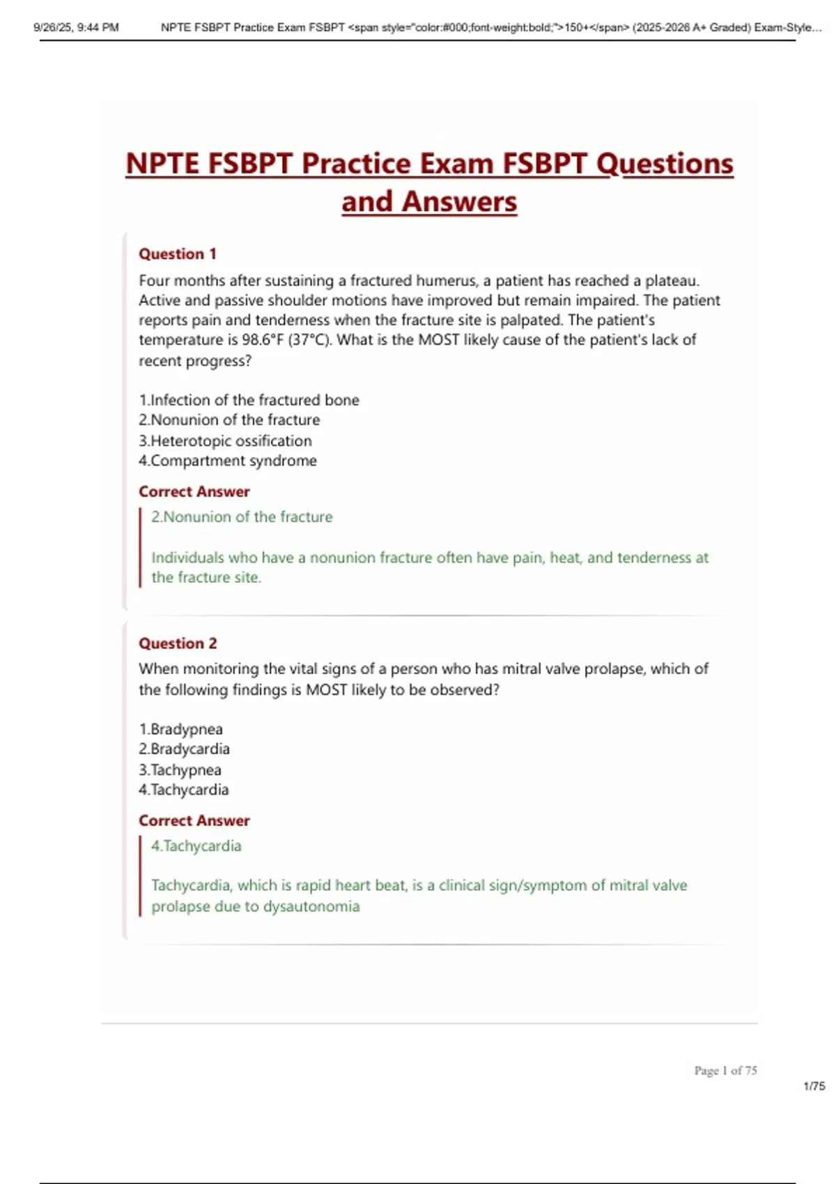 , 9/26/25, 9:44 PM NPTE FSBPT Practice Exam FSBPT <span style="color:#000;font-weight:bold;">150+</span> (2025-2026 A+ Graded) Exam-Style…