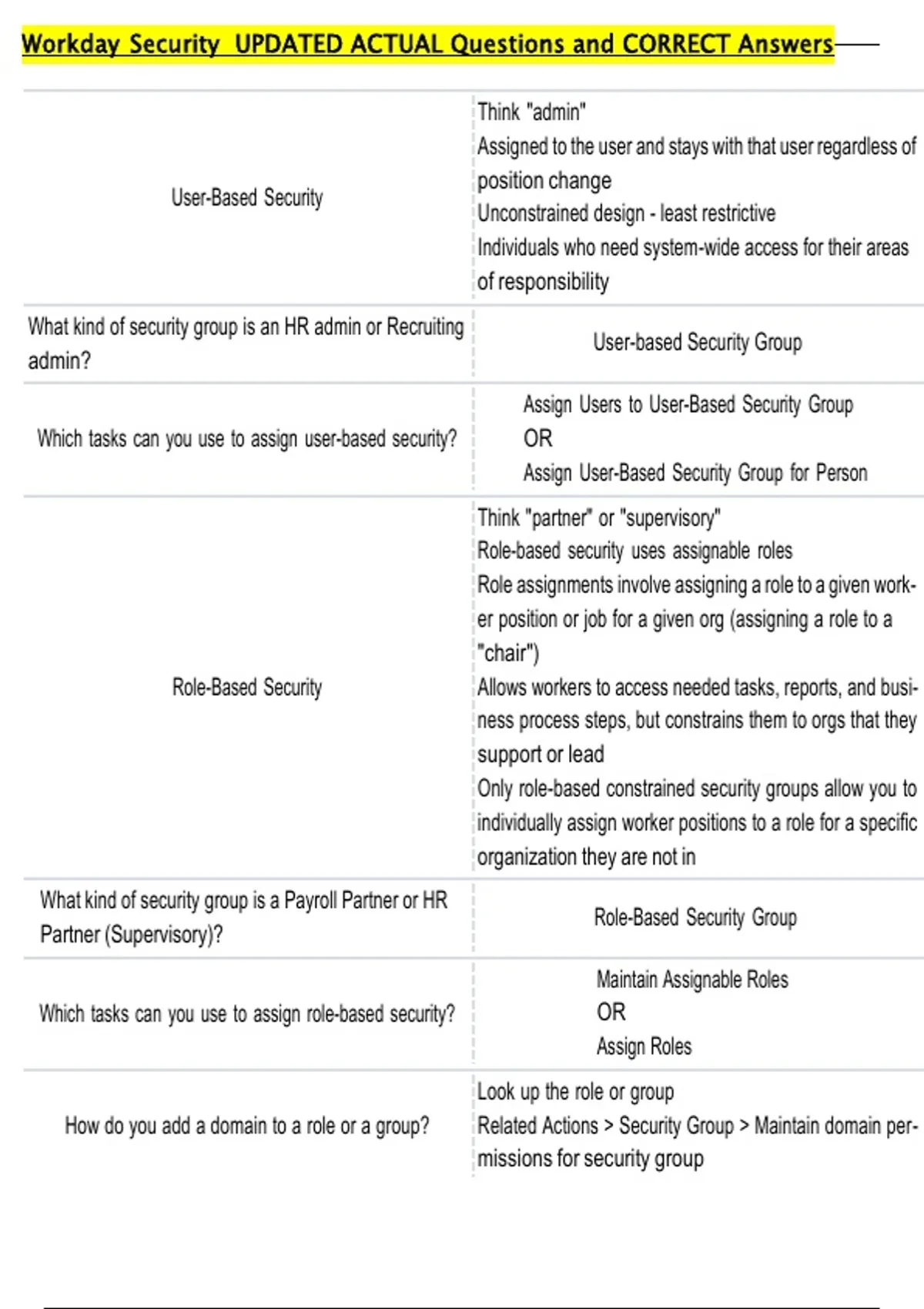 Workday Security UPDATED ACTUAL Questions and CORRECT Answers