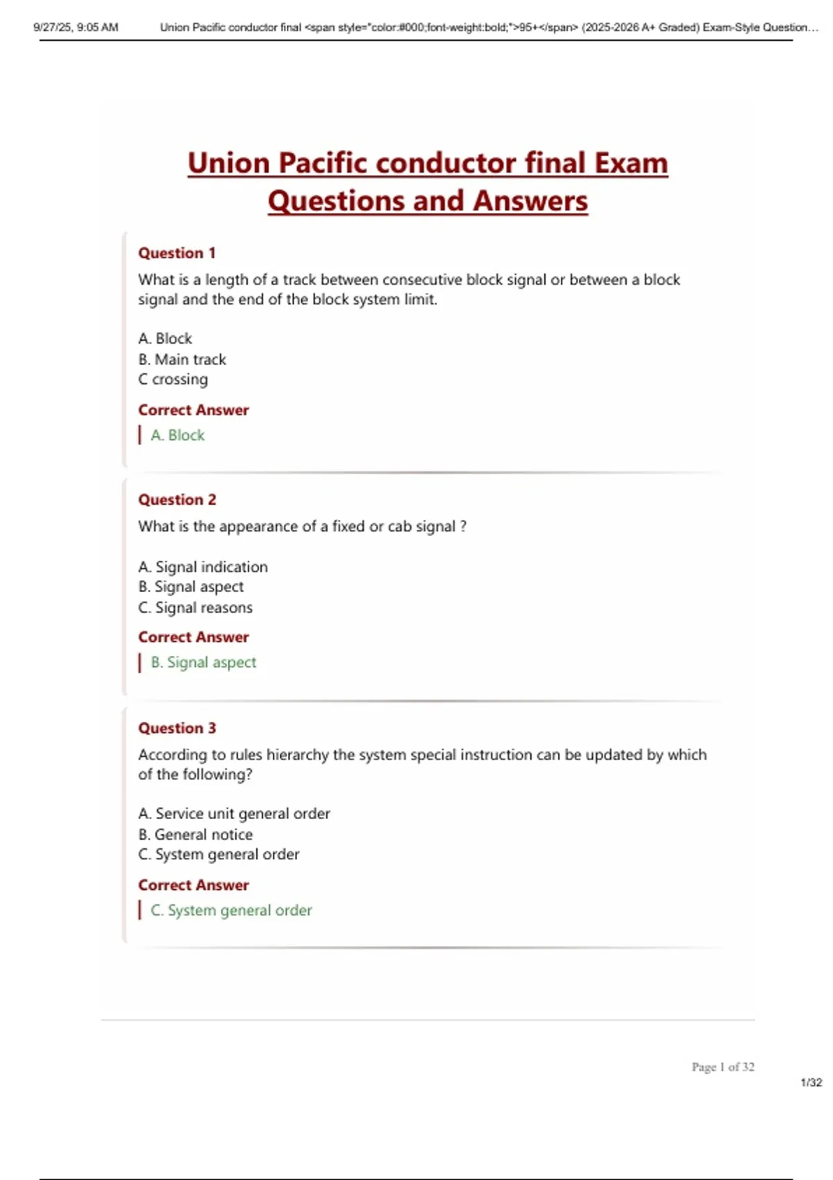 , 9/27/25, 9:05 AM Union Pacific conductor final <span style="color:#000;font-weight:bold;">95+</span> (2025-2026 A+ Graded) Exam-Style Question…