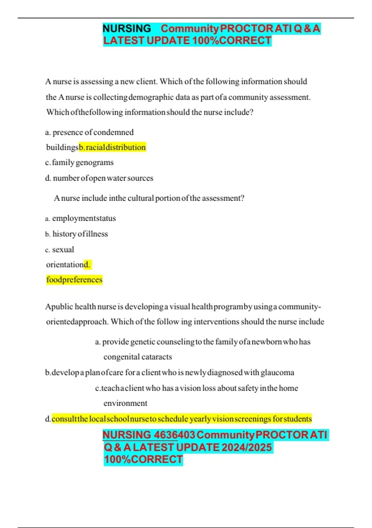 NURSING 4636403 Community PROCTOR ATI dg dg dg dg