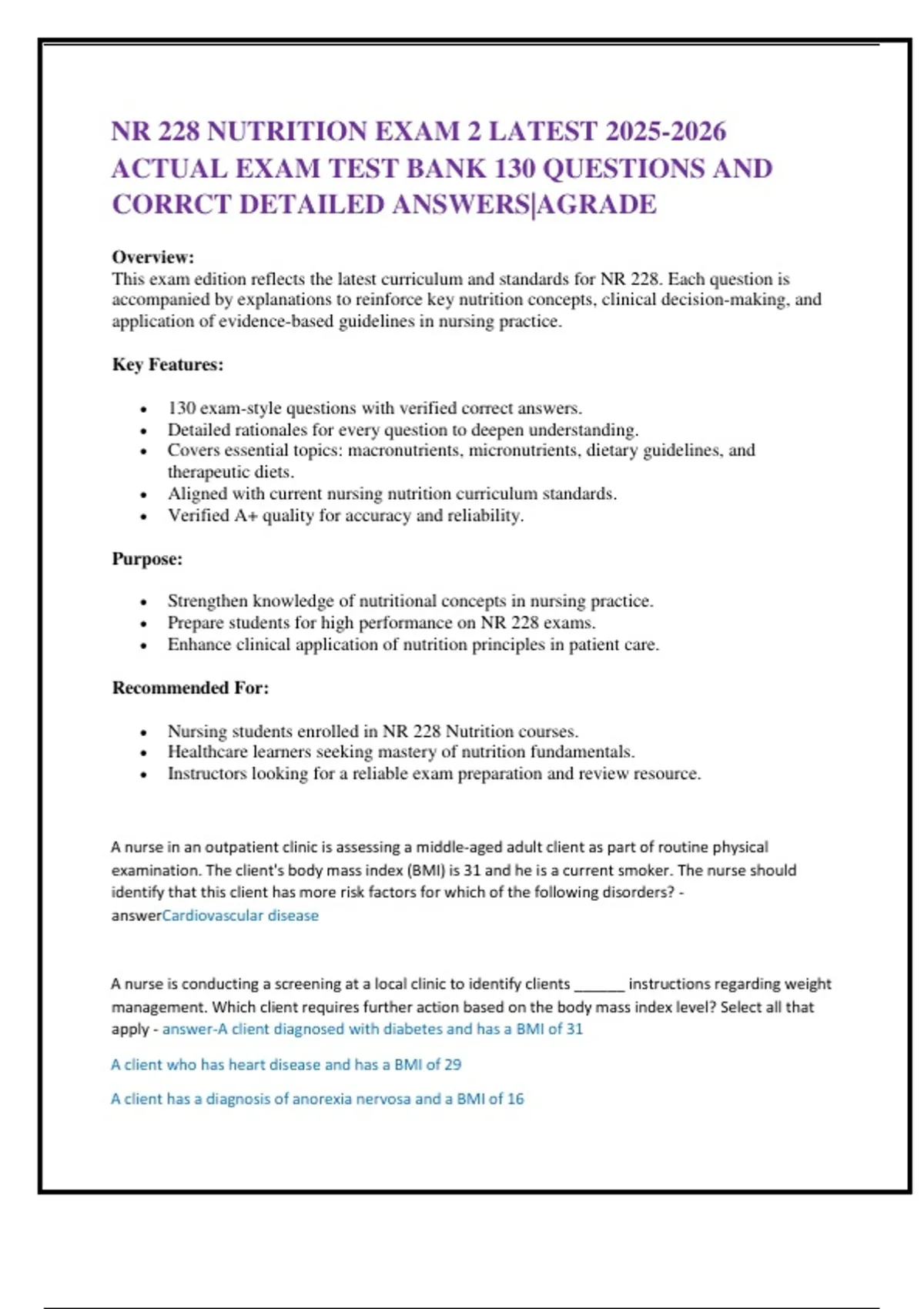 130 exam-style questions with verified correct answers.