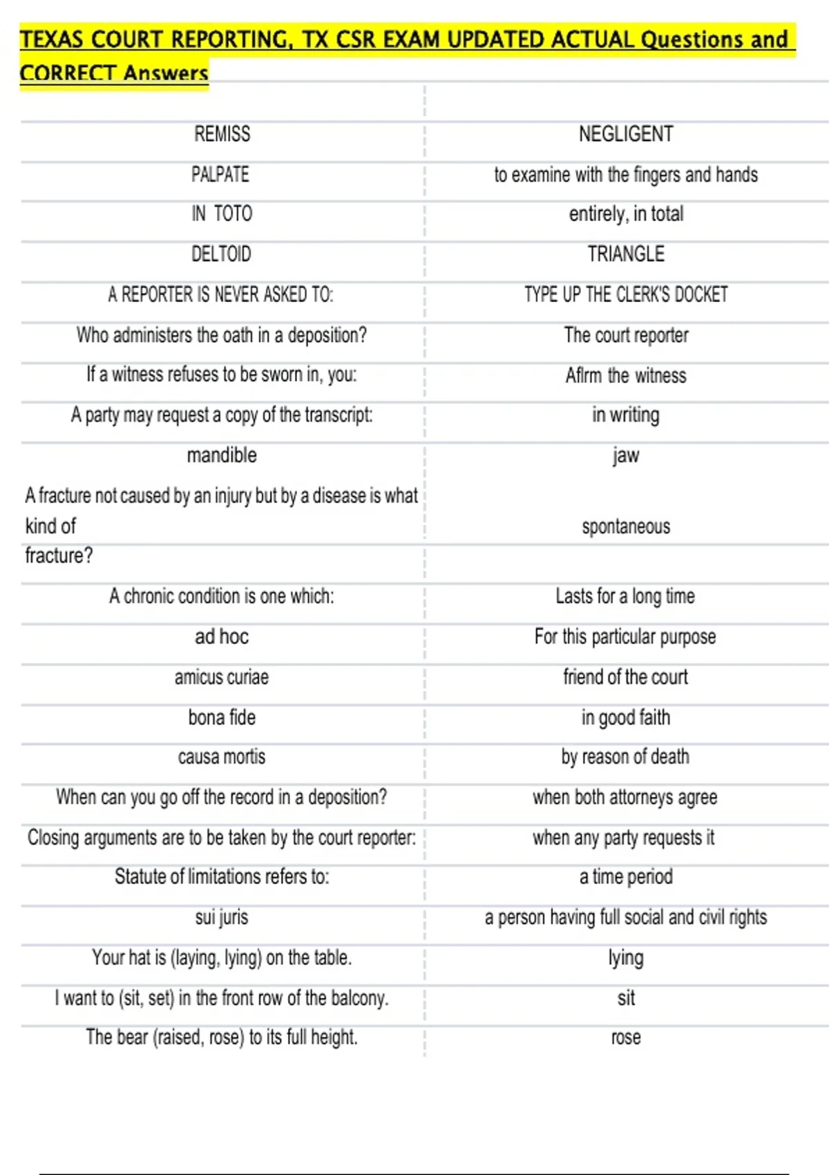 CORRECT Answers