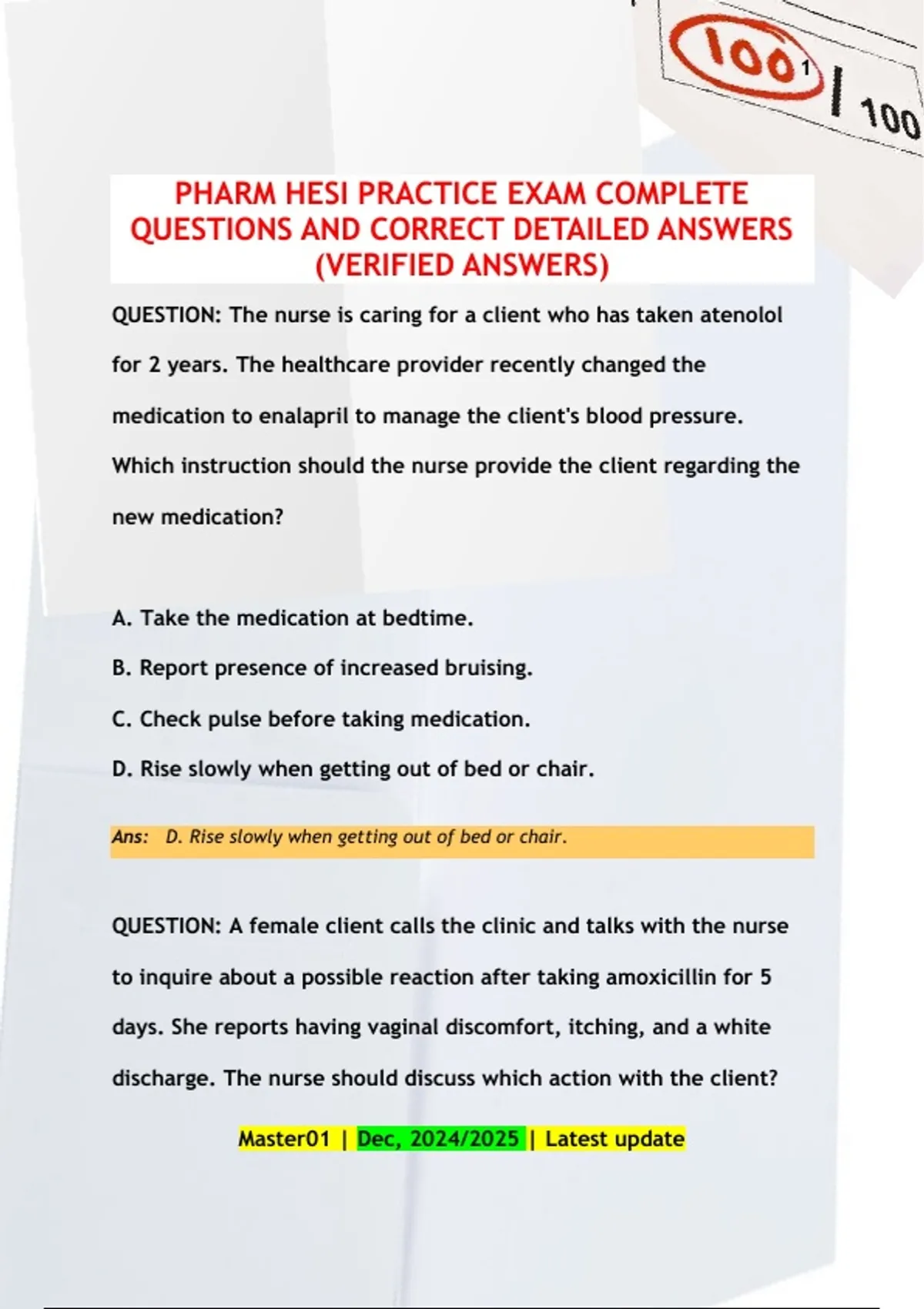 Pharm HESI Practice Exam 2026 | Complete Verified Questions & Detailed Answers