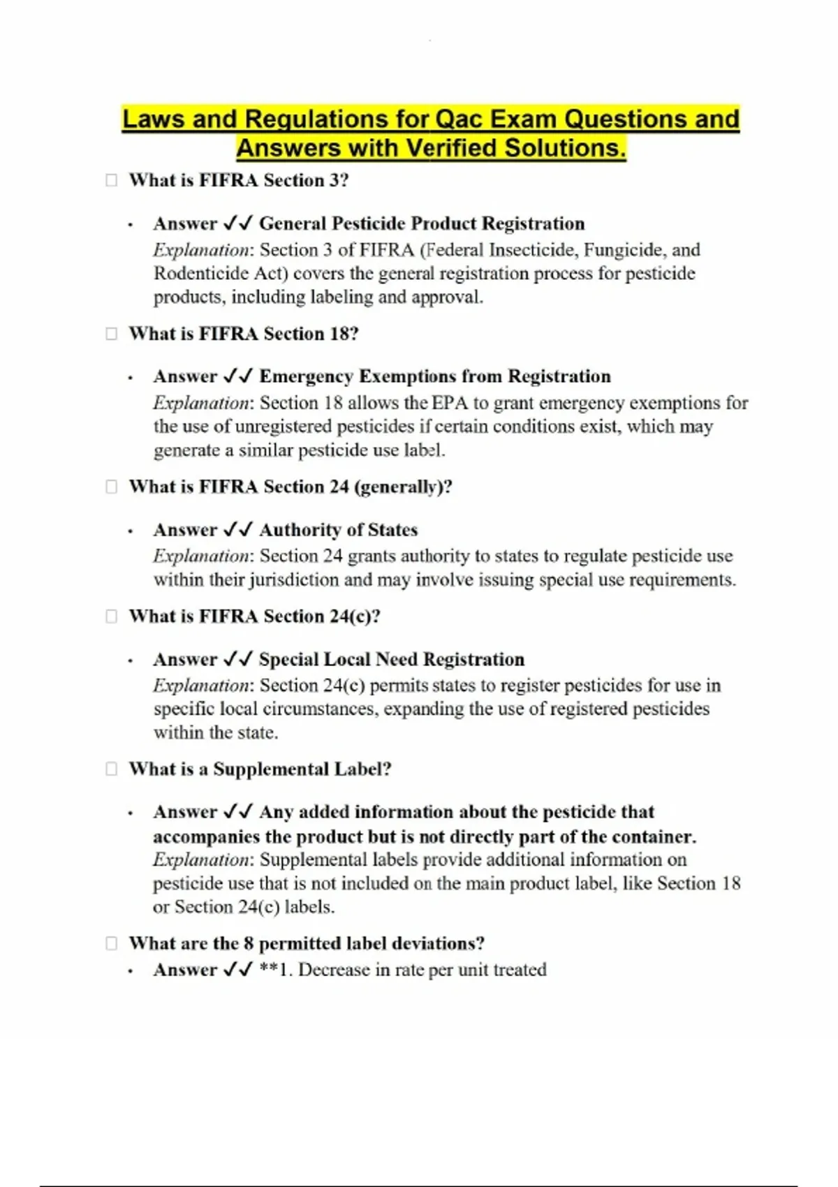 Laws and Regulations for Qac Exam Questions and Answers with Verified Solutions.