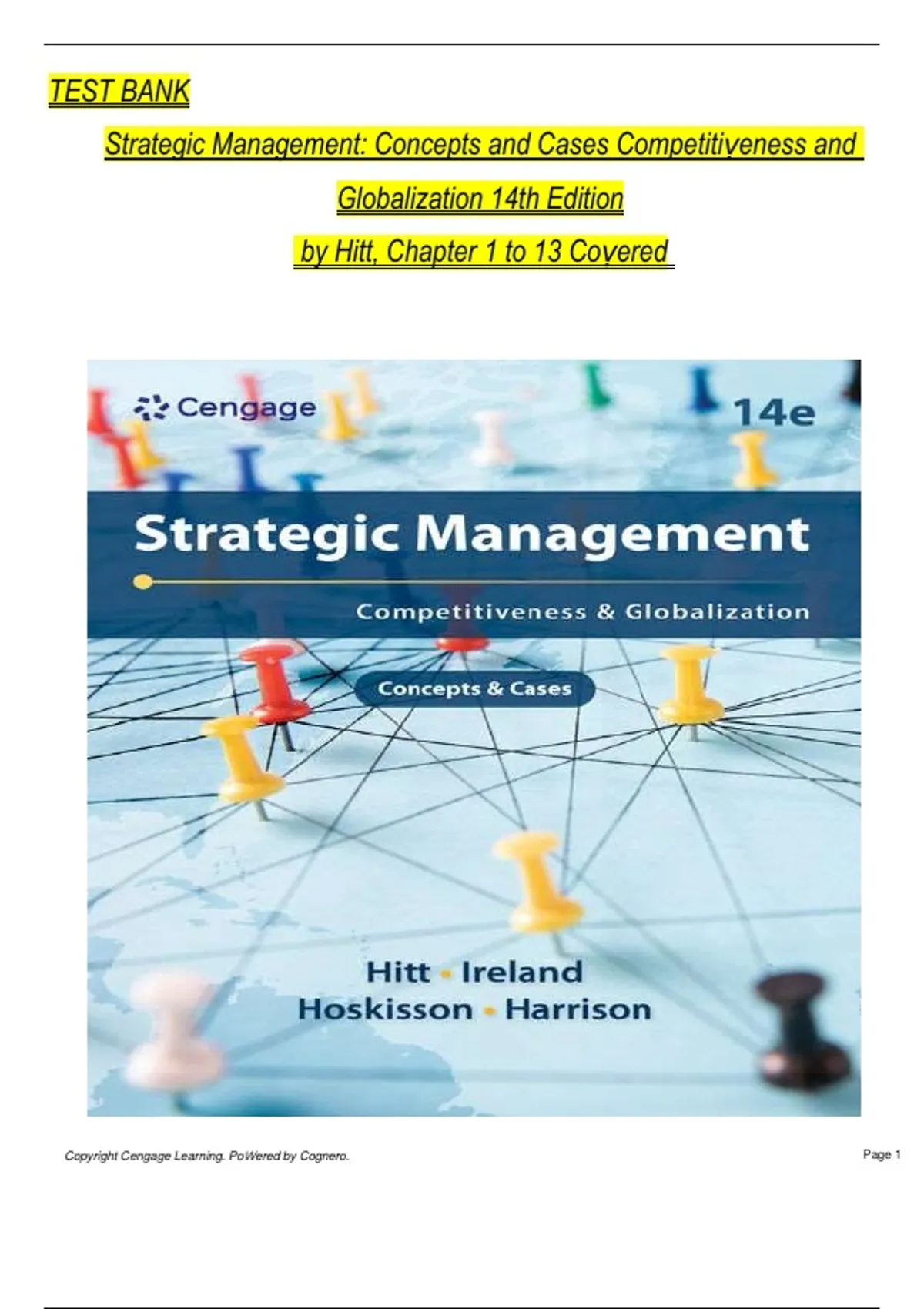 This complete 2025 test bank for Strategic Management: Concepts and Cases, Competitiveness and Globalization, 14th Edition by Hitt covers Chapters 1–13. It includes verified multiple-choice, true/false, and discussion questions with correct answers. Ideal for business and management students, this resource helps learners master strategy formulation, competitive analysis, corporate governance, and global market dynamics. Perfect for exam preparation and study support. strategic management, test bank, BUS480, competitiveness, globalization, Hitt 14th edition, business exam, management cases, corporate governance, strategy formulation, chapters 1-13