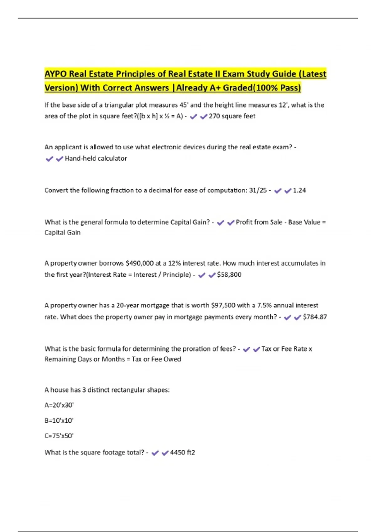 AYPO Real Estate Principles of Real Estate II Exams Bundles (Latest Version) With Correct Answers |Already A+ Graded(100% Pass)