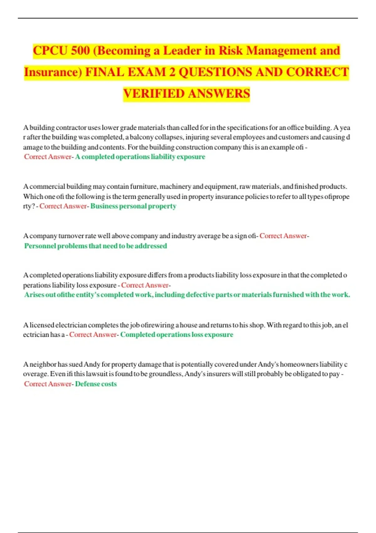 Insurance) FINAL EXAM 2 QUESTIONS AND CORRECT
