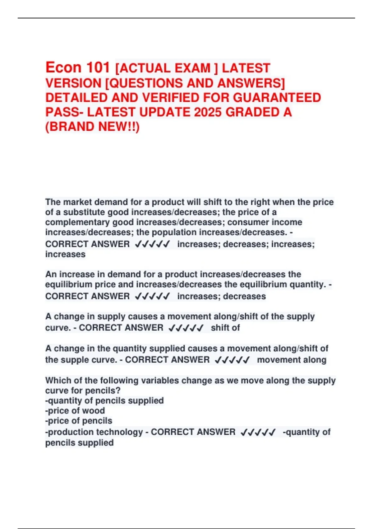 Econ 101 -ACTUAL EXAM - LATEST VERSION -QUESTIONS AND ANSWERS