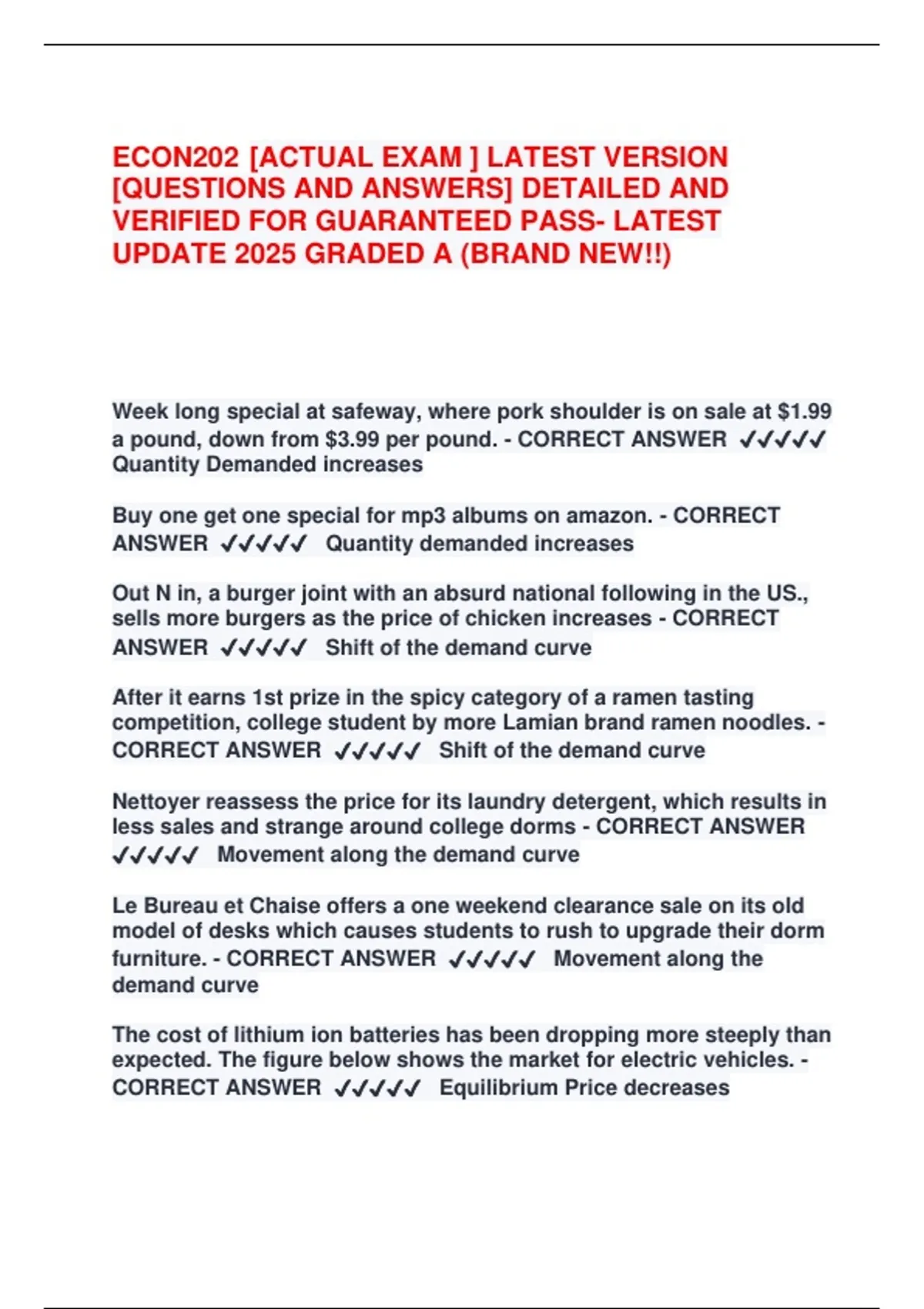CORRECT ANSWER ✔✔✔✔✔ Equilibrium Price decreases