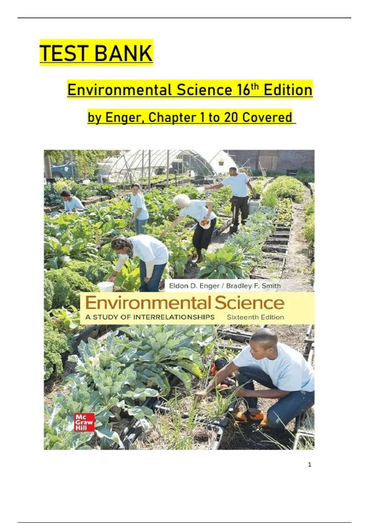 TEST BANK Environmental Science 16th Edition by Enger, Chapter 1 to 20 Covered TEST BANK Environmental Science 16th Edition by Enger, Chapter 1 to 20 Covered