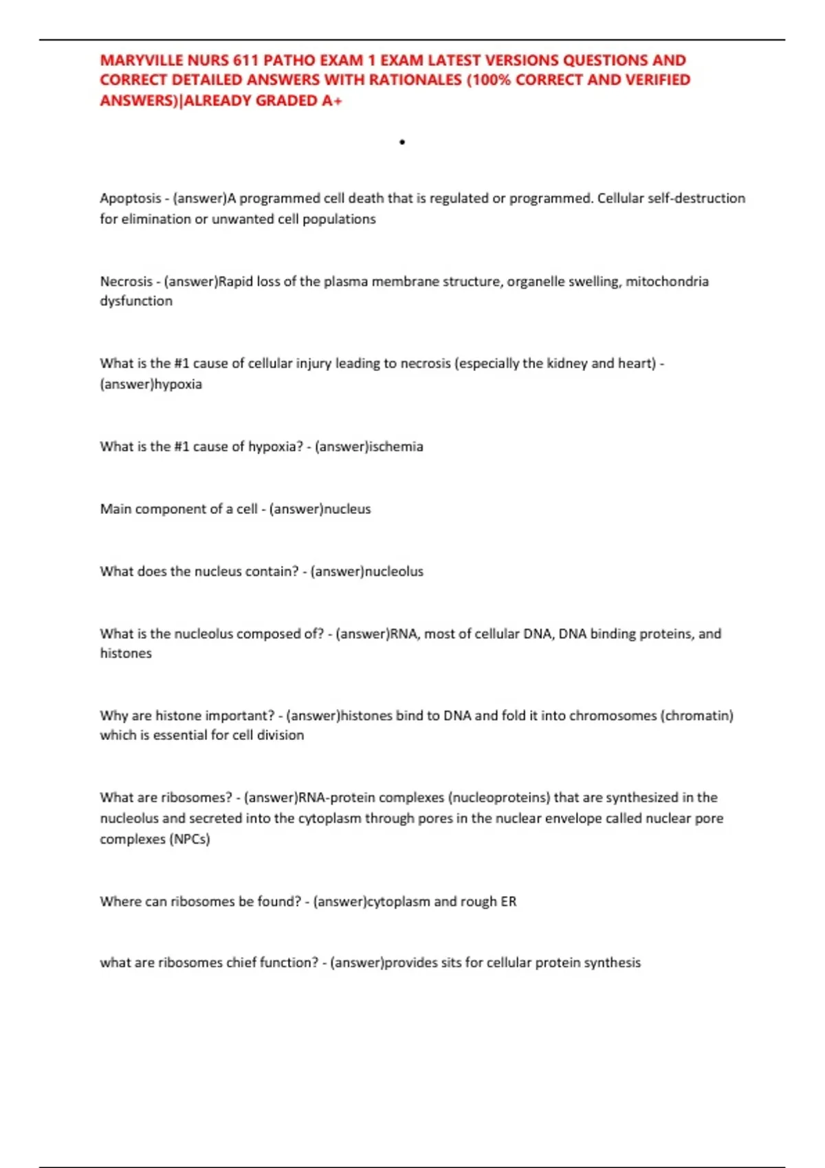 , MARYVILLE NURS 611 PATHO EXAM 1 EXAM LATEST VERSIONS QUESTIONS AND
