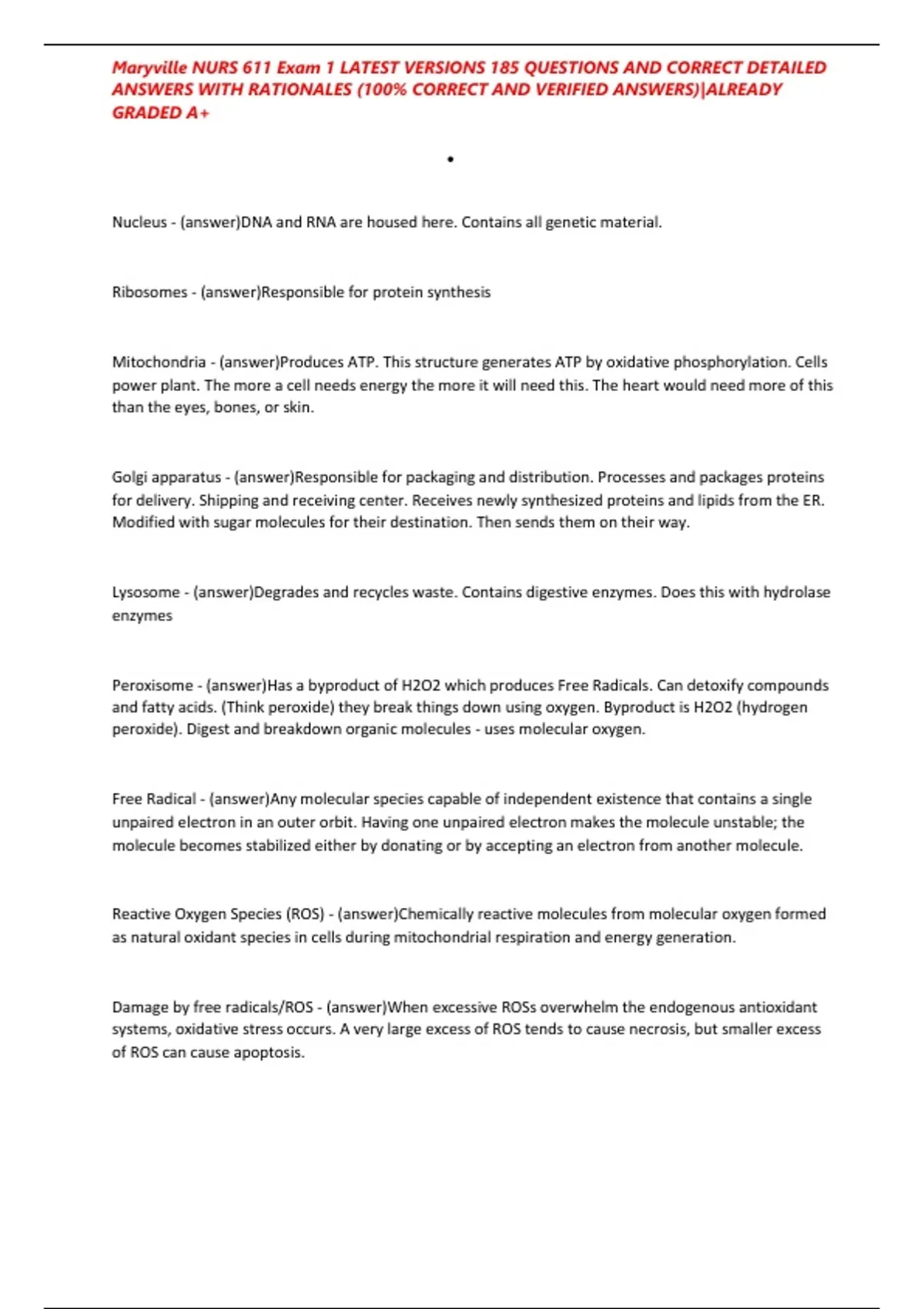 On this platform, you will discover a variety of meticulously crafted study materials, including detailed documents, comprehensive bundles, and expertly designed flashcards provided by the seller, Nursequeen. These resources are thoughtfully prepared to support your learning journey and make your studies and exam preparations smooth and effective. I am here to offer any assistance or answer any questions you may have regarding your academic needs. Please don’t hesitate to reach out for guidance or support—I am more than happy to help you achieve success in your courses and exams. Wishing you a seamless and rewarding learning experience. Thank you so much for choosing these resources!