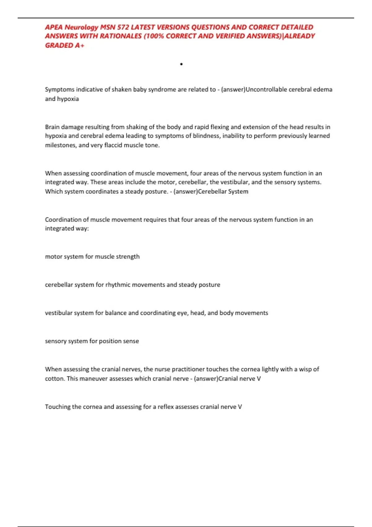 ,APEA Neurology MSN 572 LATEST VERSIONS QUESTIONS AND CORRECT DETAILED