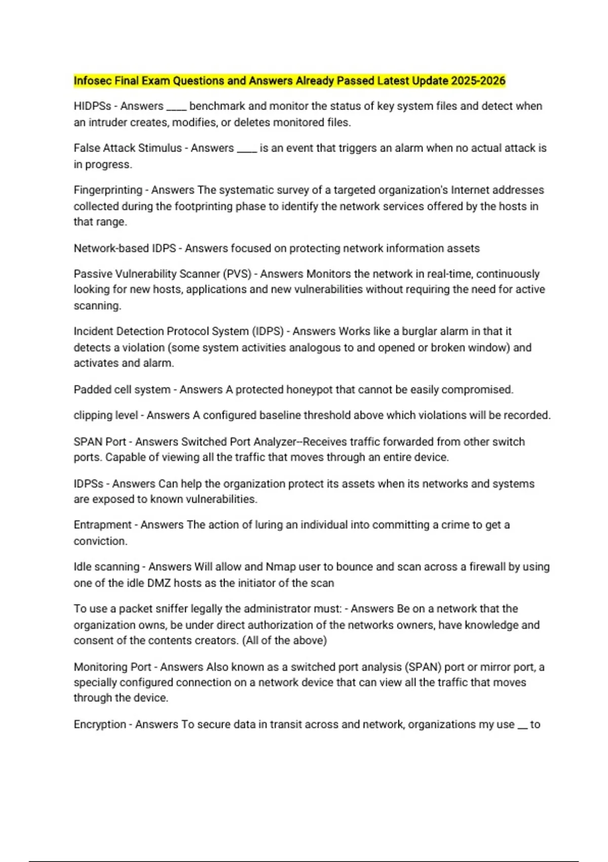 Infosec Final Exam Questions and Answers Already Passed Latest Update 2025-2026