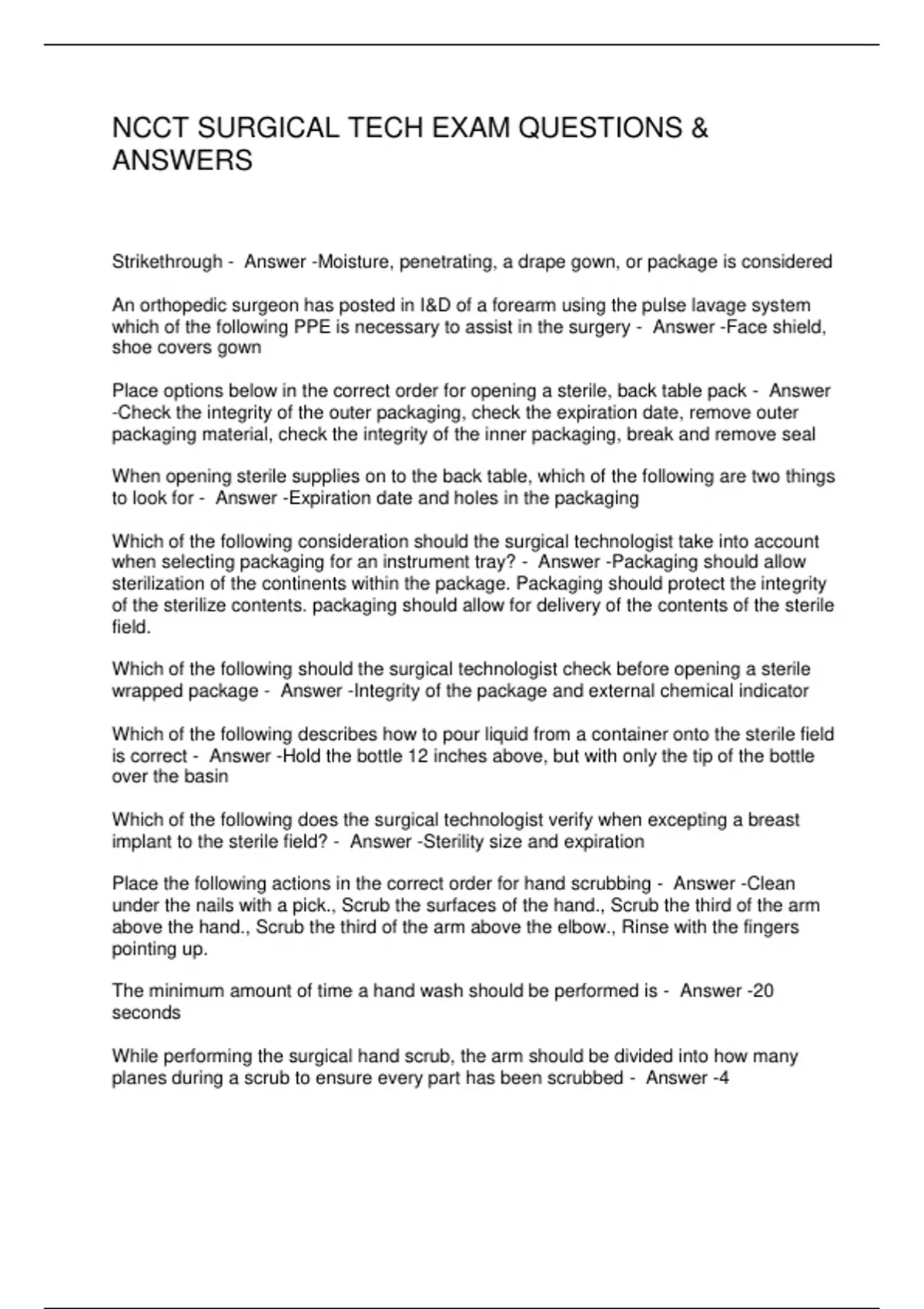 NCCT SURGICAL TECH EXAM QUESTIONS &