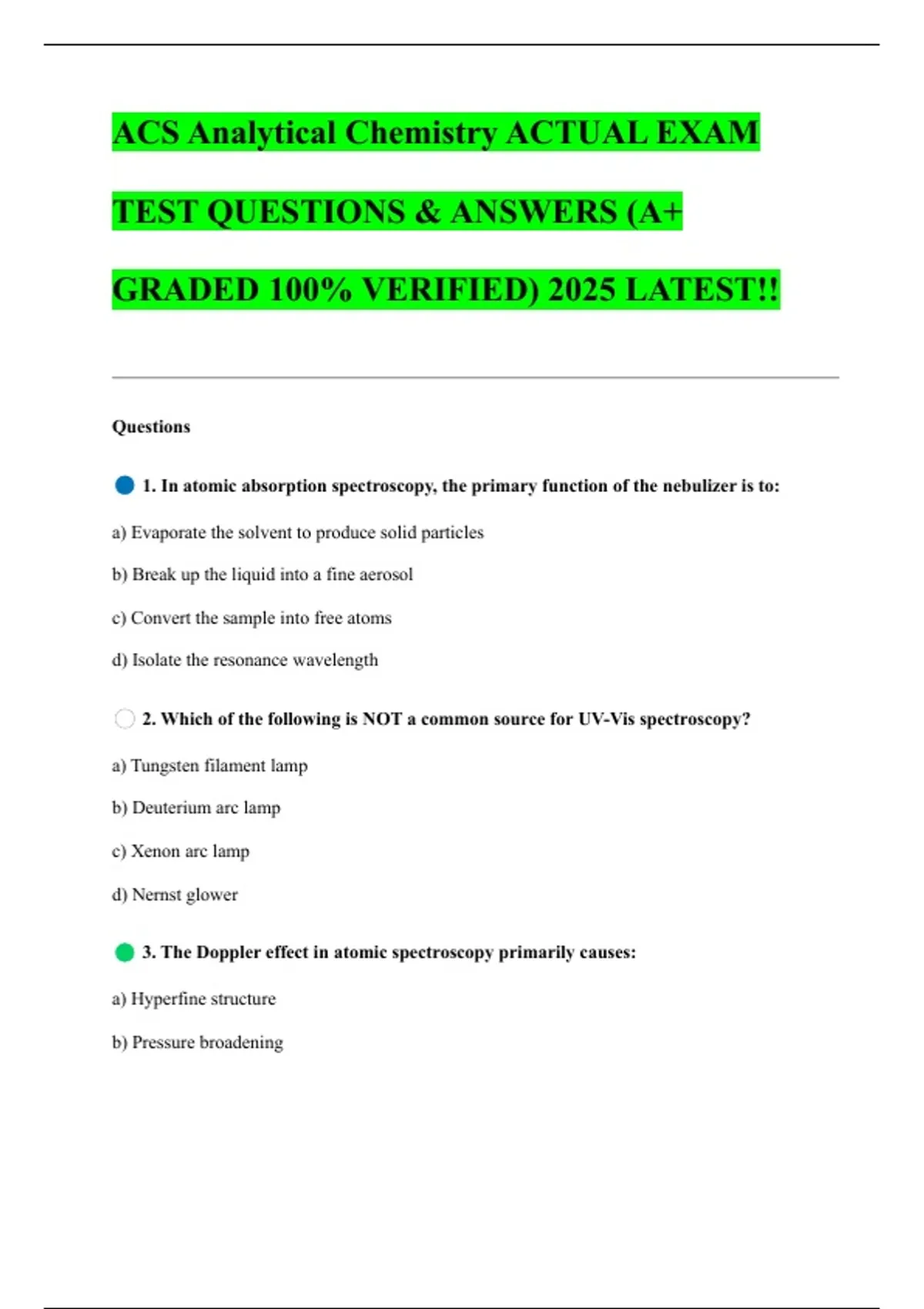 ACS Analytical Chemistry ACTUAL EXAM TEST QUESTIONS & ANSWERS (A+ GRADED 100% VERIFIED) 2025 LATEST!!