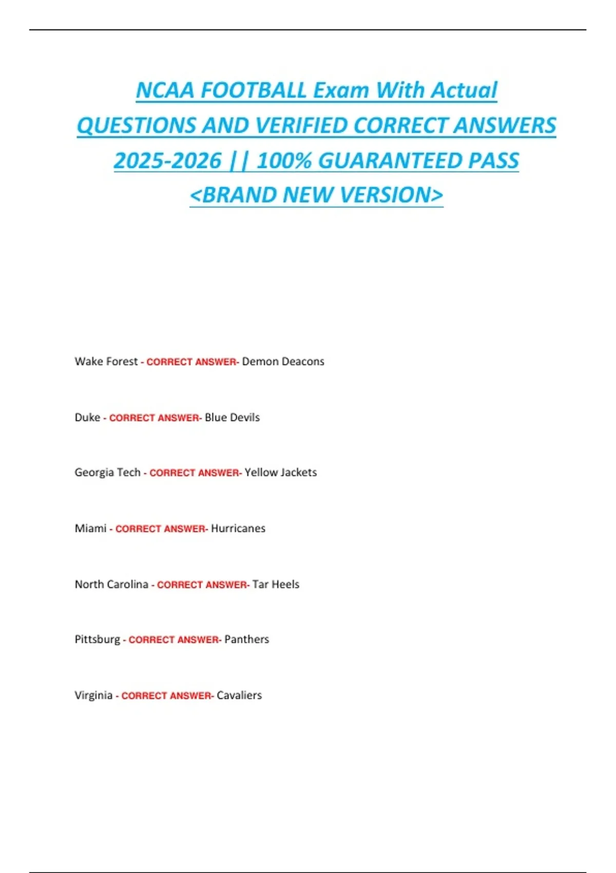 Wake Forest - CORRECT ANSWER- Demon Deacons