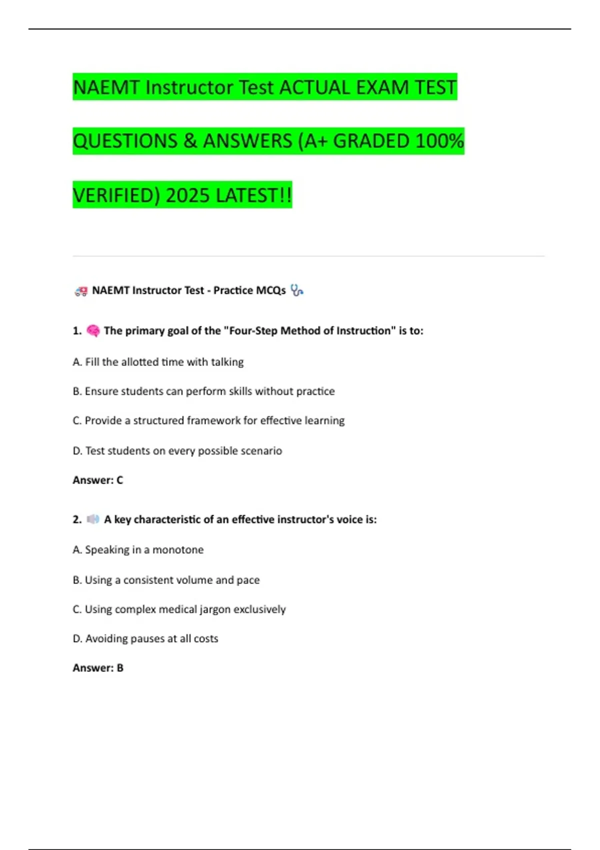 NAEMT Instructor Test - Practice MCQs