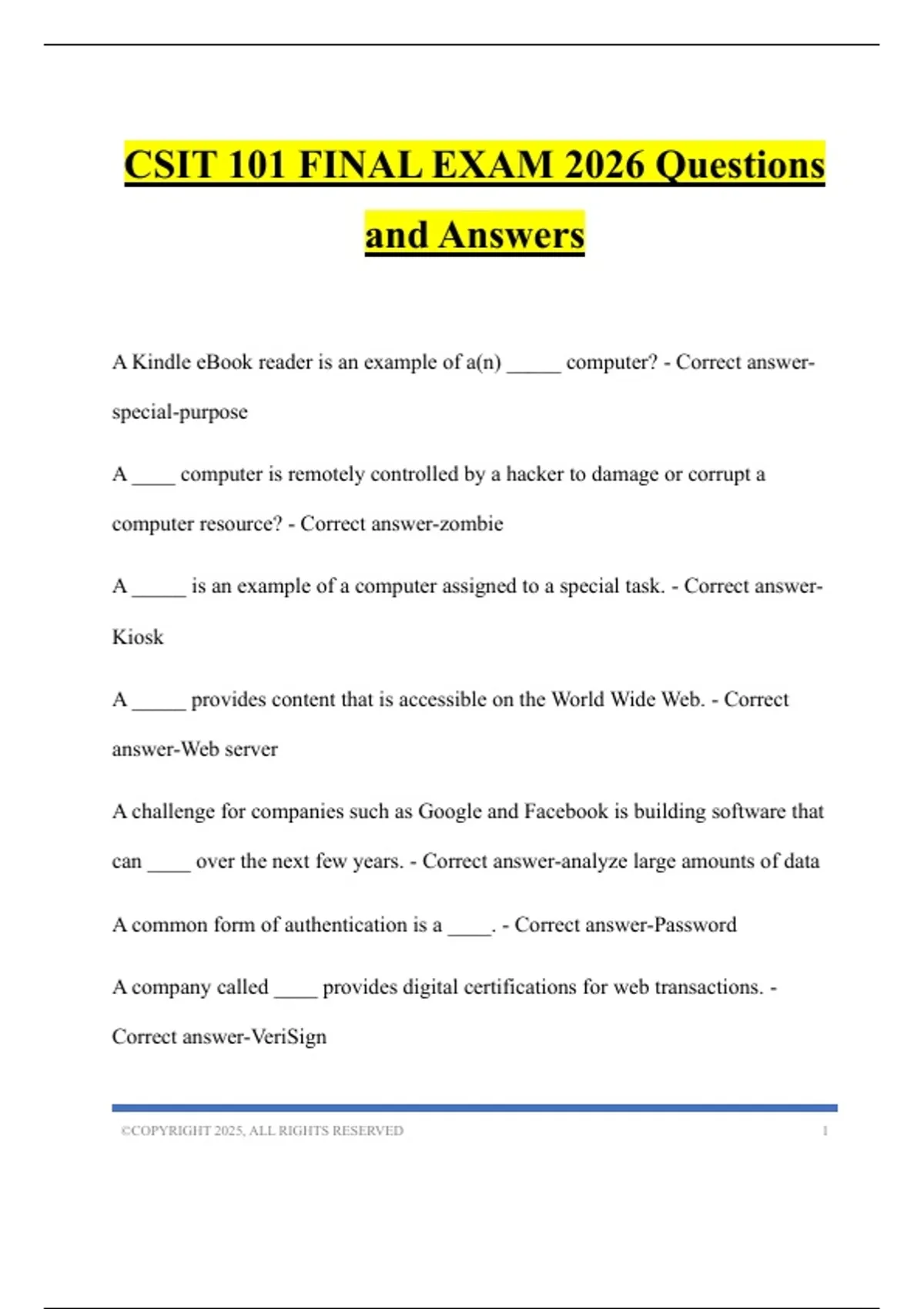 CSIT 101 FINAL EXAM 2026 Questions and Answers
