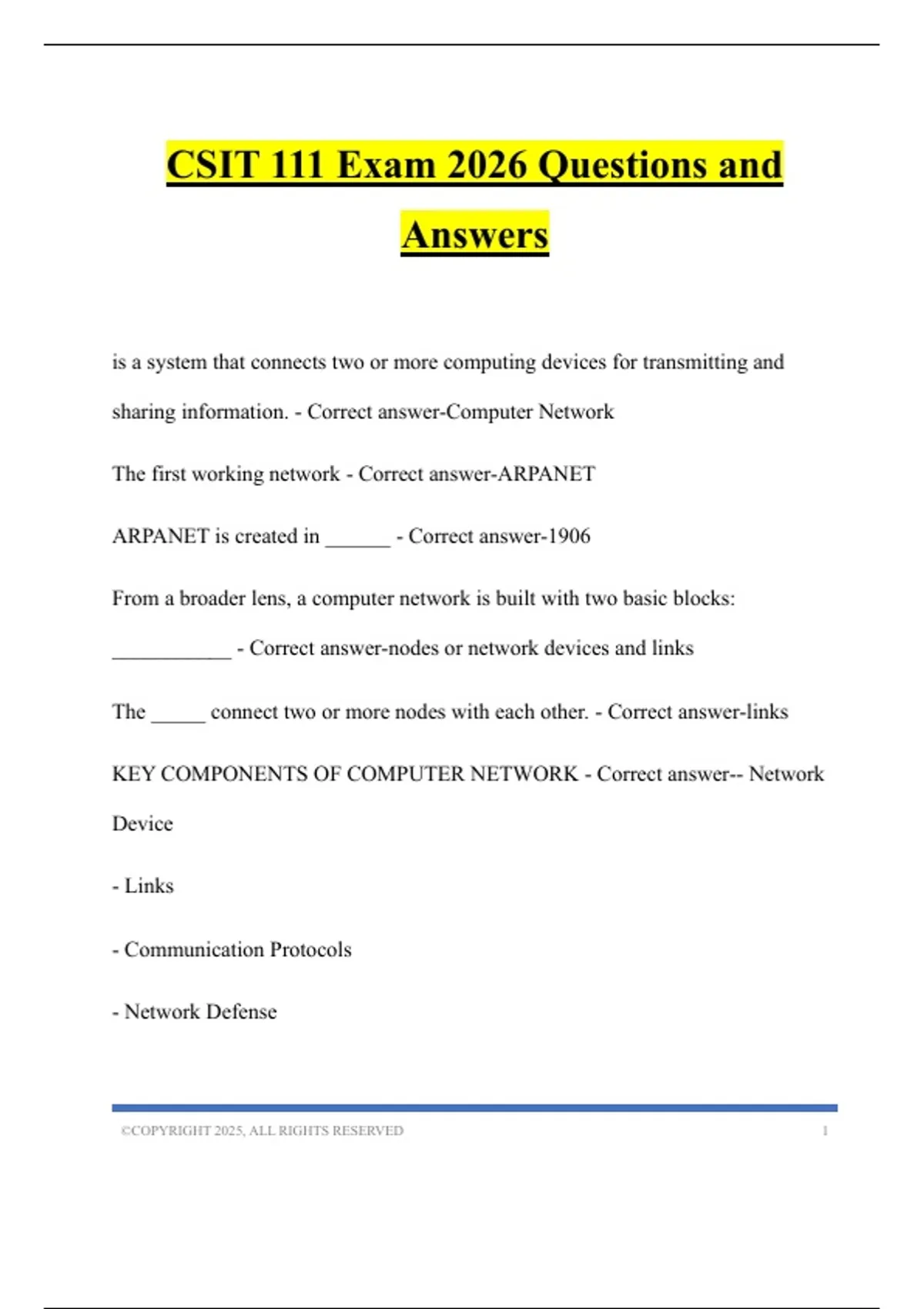 CSIT 111 Exam 2026 Questions and