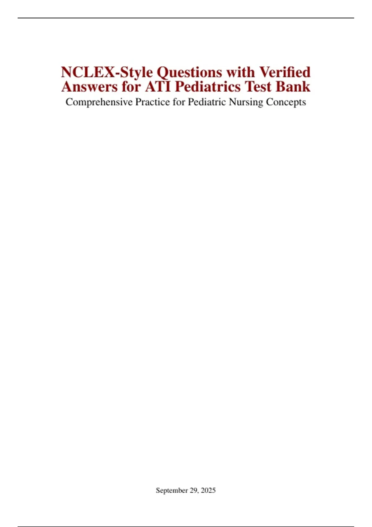 NCLEX-Style Questions with Verified Answers for ATI Pediatrics Test Bank Comprehensive Practice for Pediatric Nursing Concepts