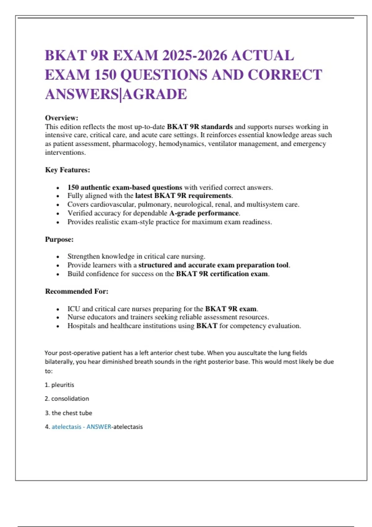 ICU and critical care nurses preparing for the BKAT 9R exam.
