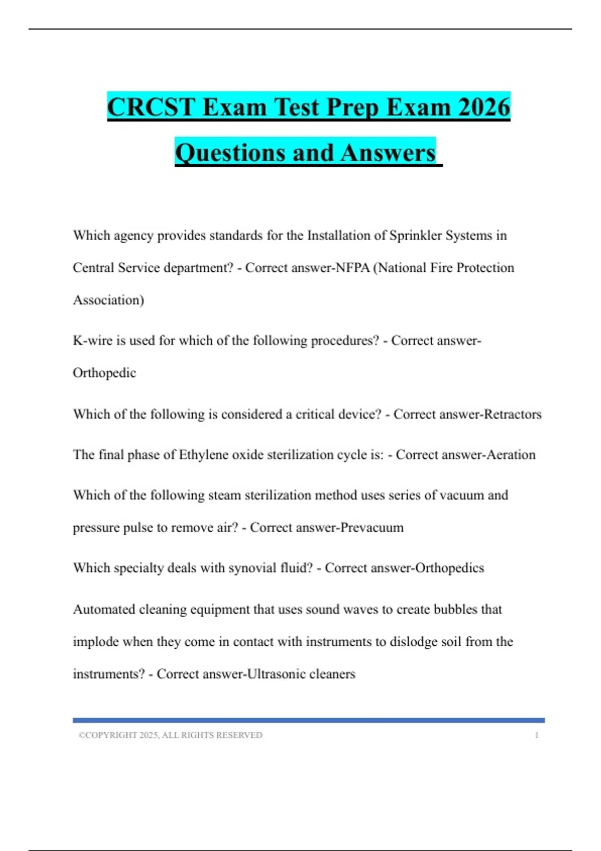 CRCST Exam Test Prep Exam 2026 Questions and Answers
