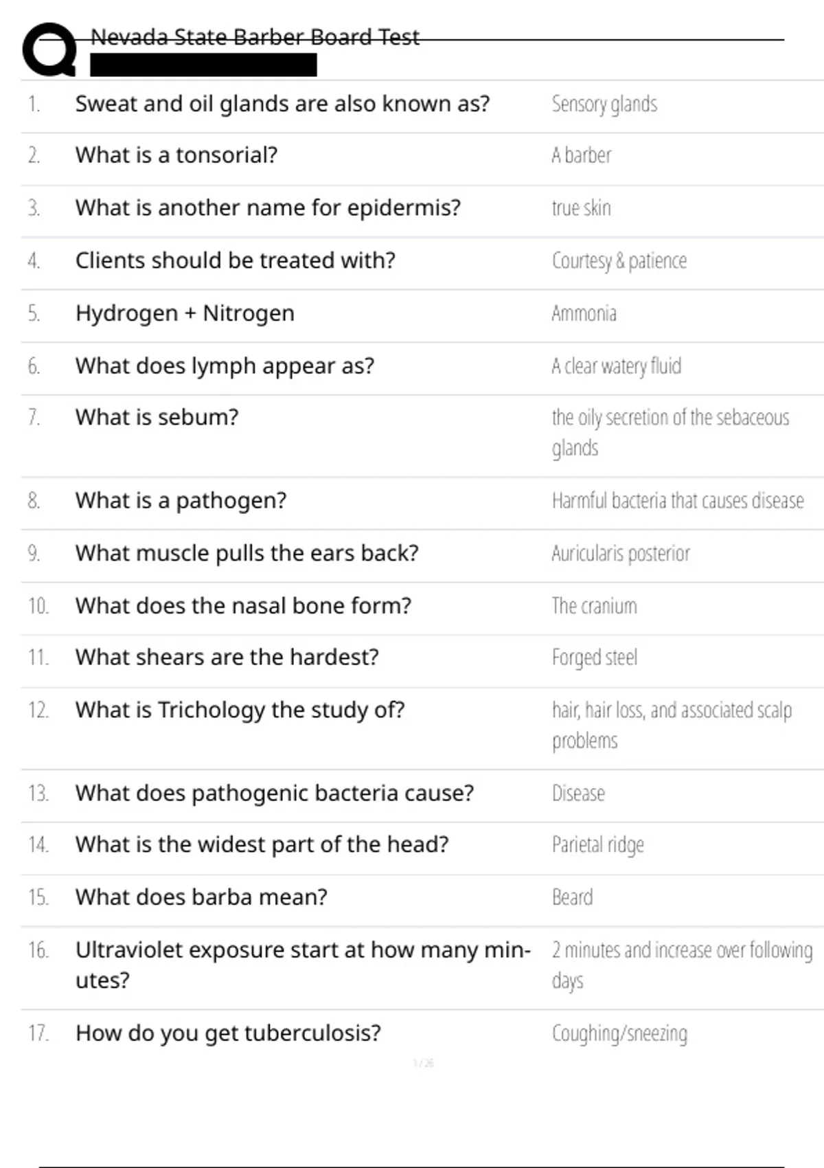 , Nevada State Barber Board Test