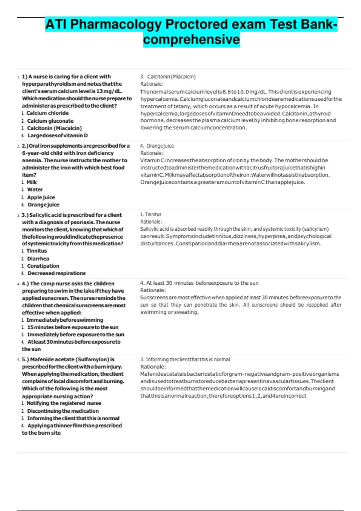 1. i1) iA inurse iis icaring ifor ia iclient iwith 3. Calcitonin (Miacalcin)