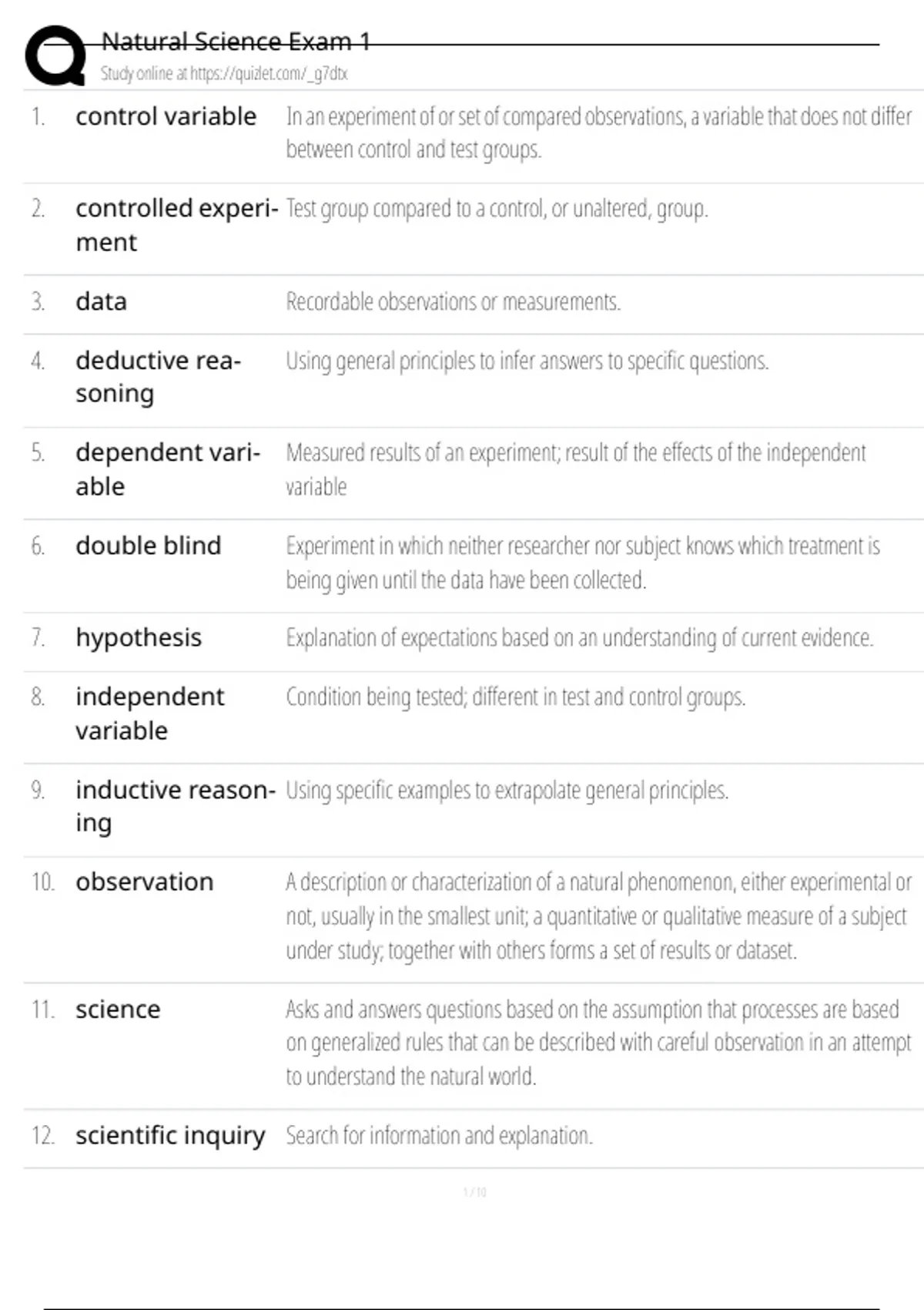 Natural Science Exam 1