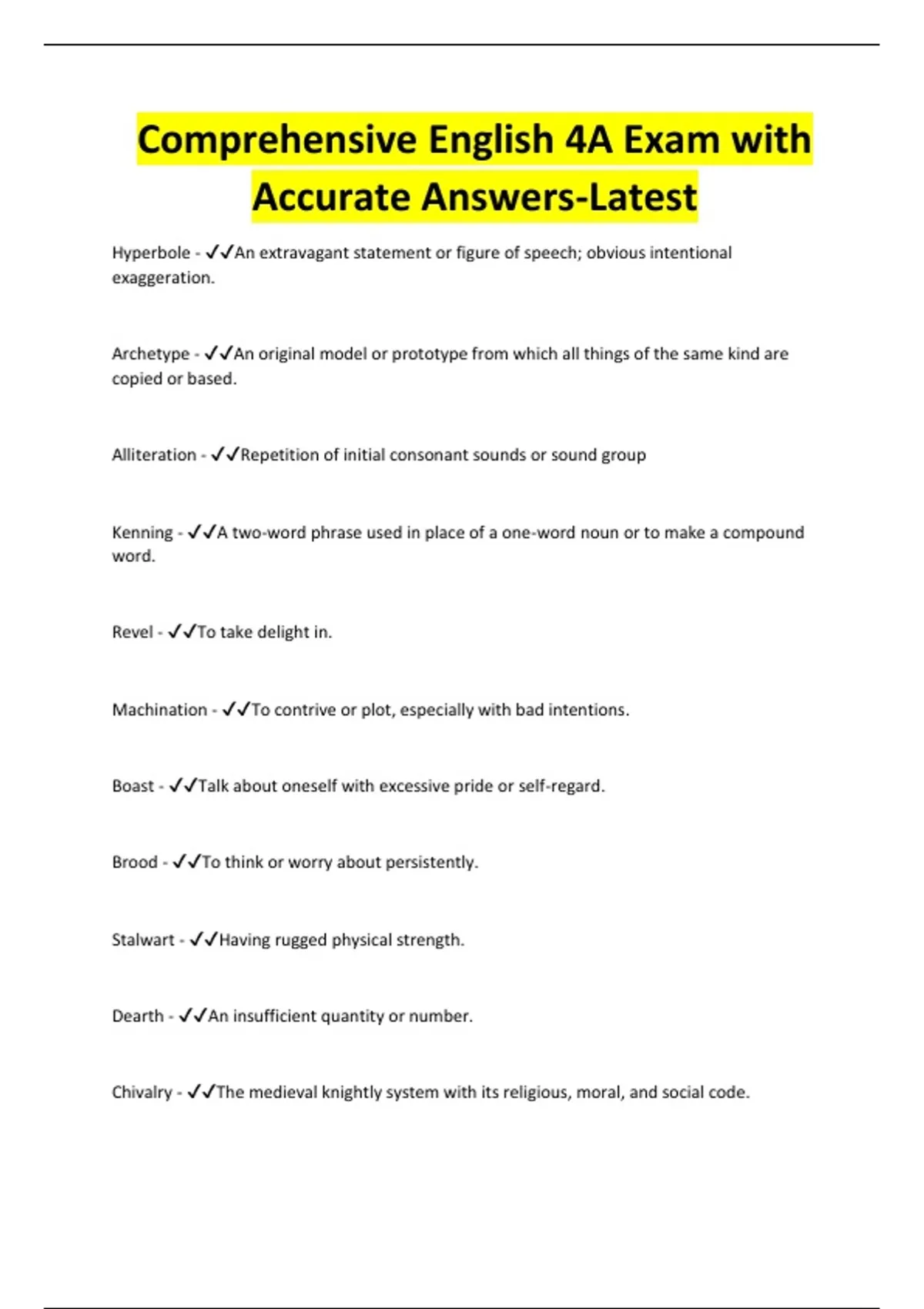 Comprehensive English 4A Exam with Accurate Answers-Latest